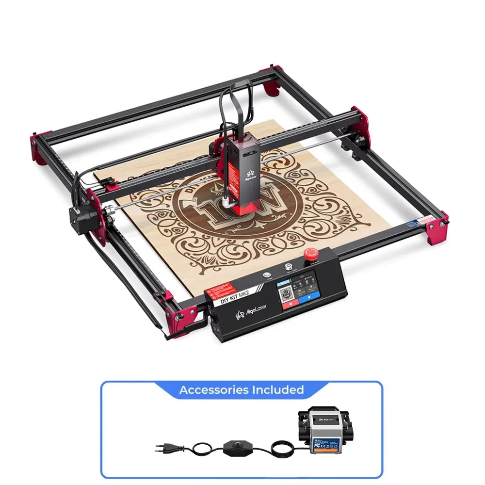 Powerful Compatibility - AlgoLaser DIY KIT MK2 Supports offline connection via WiFi-2.4 GHz and TF card (built-in 8G); Supports wired connection via USB Type-A & Type-C; Supports USB stick connection (LaserGRBL/Lightburn software). It supports import with BMP, JPG, PNG, DXF, AI, SVG file format and so on.