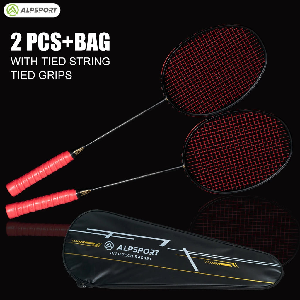 ALP XHP 【2 Pcs+Bag】 6U 72g 100% Full Carbon 30 LBS Strung Badminton Racket With Professional Ultralight Reket Badminton Racquet Free String High Tech G4 T700 Elastic Fiber Sports Equipment Battledore Offensive Training Raket For Men And Women