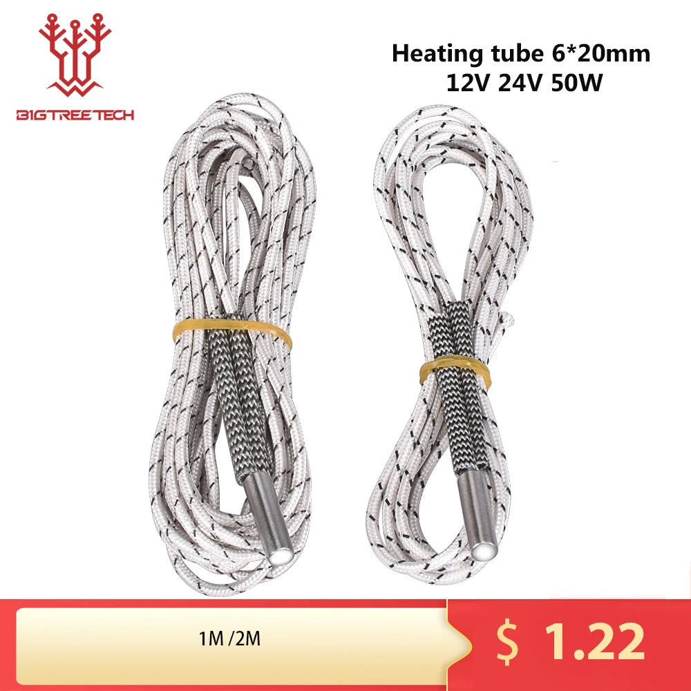 BIQU Heating tube 6*20mm 12V 24V 50W Ceramic Cartridge Heater 1M 2M Reprap&Mendel For V6 J-head Extruder 3D printer part