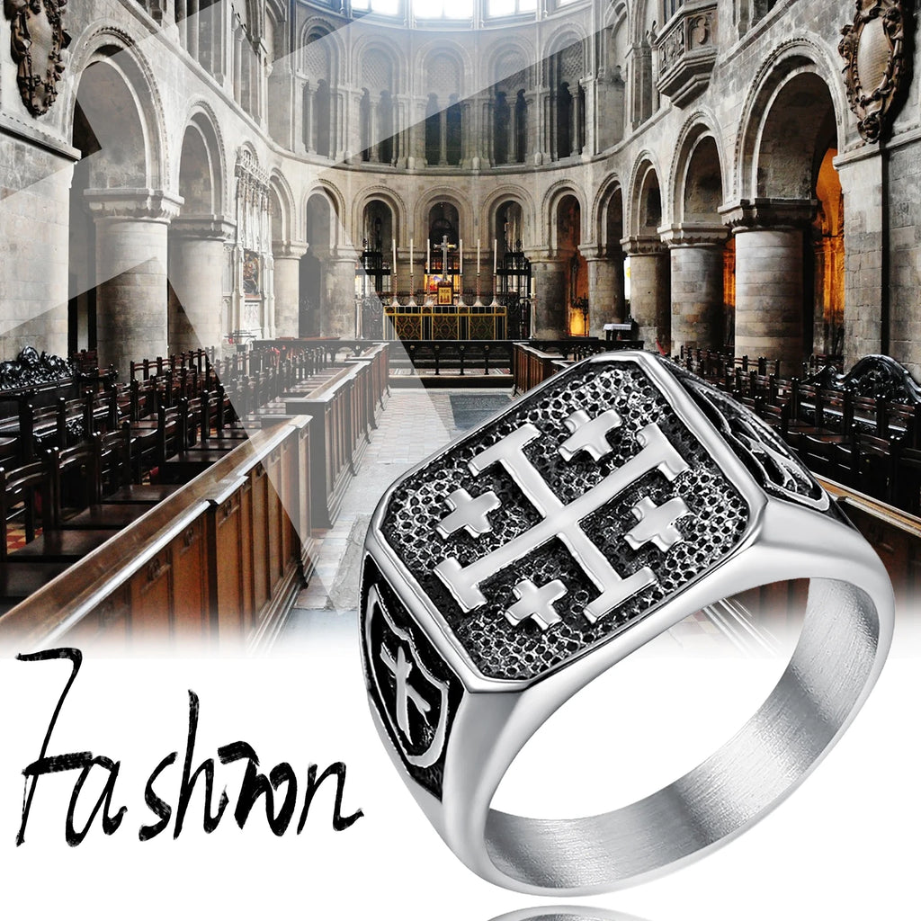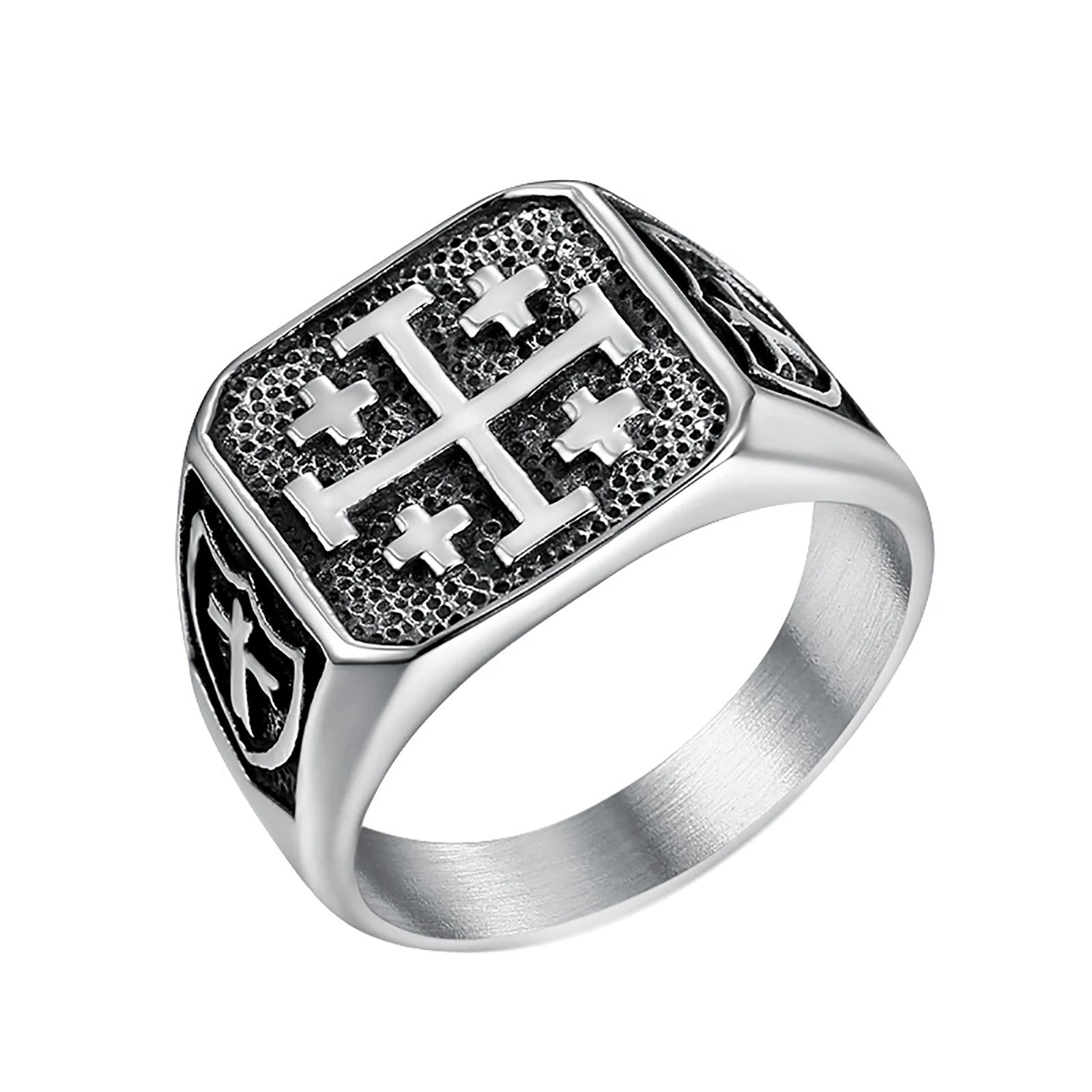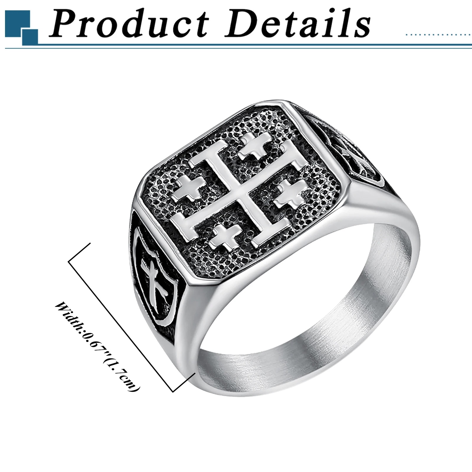 BONISKISS Men's Cross Ring Retro Jerusalem stainless steel signet ring Religious ring Father's Day Baptism Easter Holiday gift
