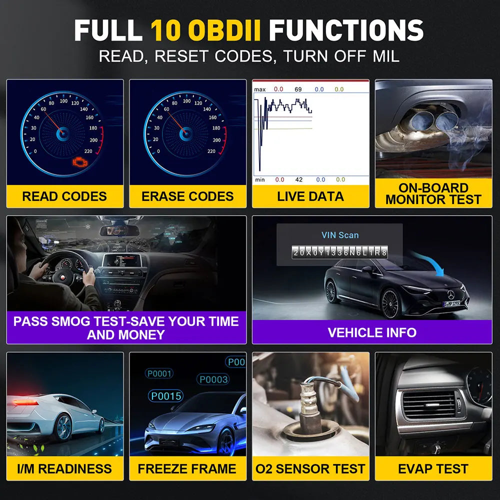 I/M Readiness Check: Shows whether the various emissions-related systems on the vehicle are operating properly and are ready for inspection and maintenance testing, easily access the vehicle’s status information for better diagnostics and troubleshooting. to know the vehicle’s status.