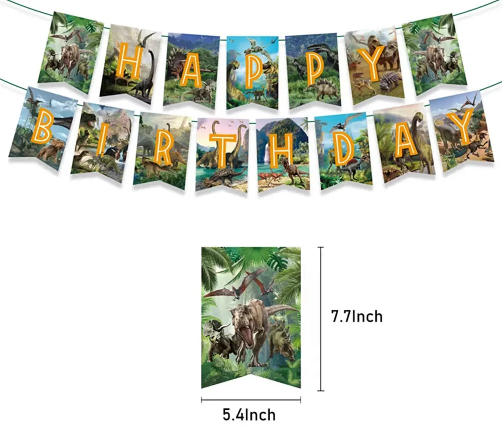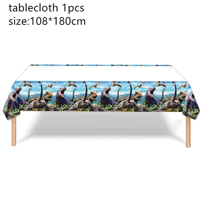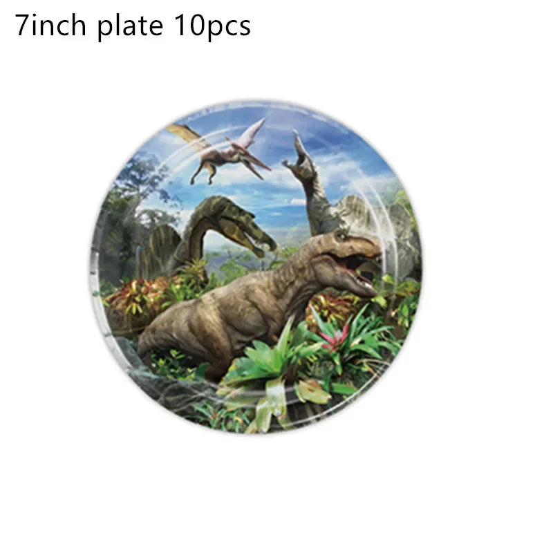 New Jurassic Dinosaur Theme Disposable Tableware Cup Plates Children's Birthday Party Dinosaur Latex Balloon Banner Decoration