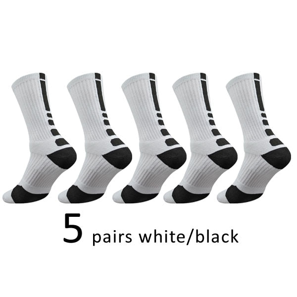 5 Pairs/Lot Professional Cycling Socks Mens Thicker Stocking Sweat-Absorbent Basketball Outdoor Sports Football Skateboard Socks