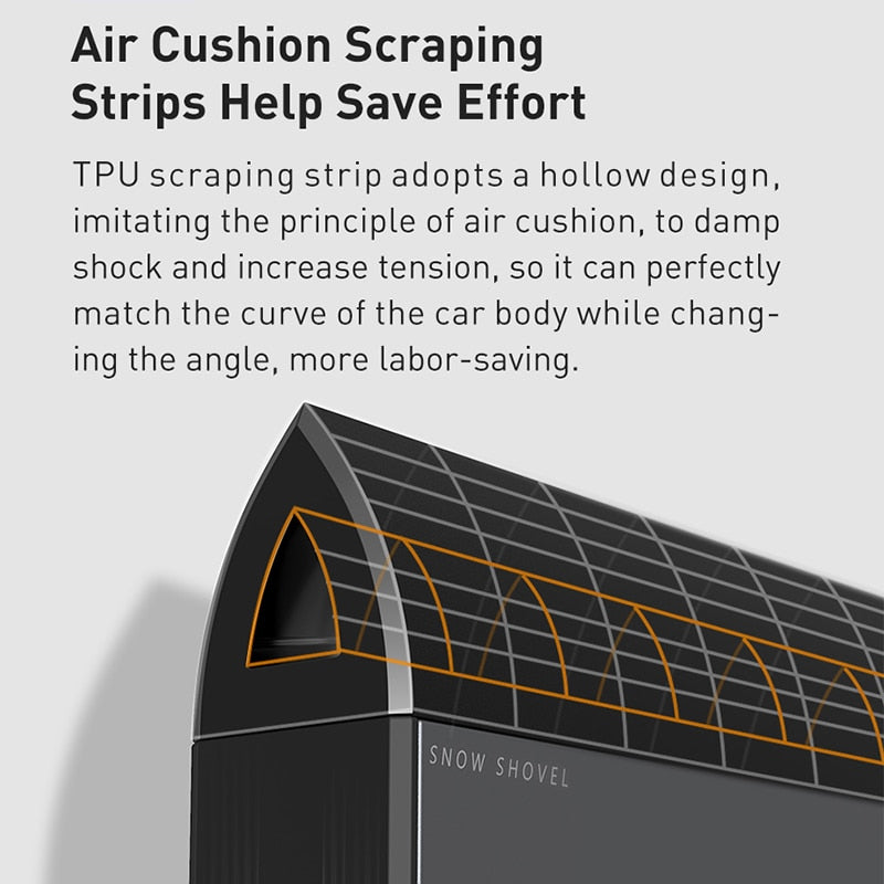 TPU scraping strip adopts a hollow design, imitating the principle of air cushion, to damp shock and increase tension, so it can perfectly match the curve of the car body while changing the angle, more labor-saving.