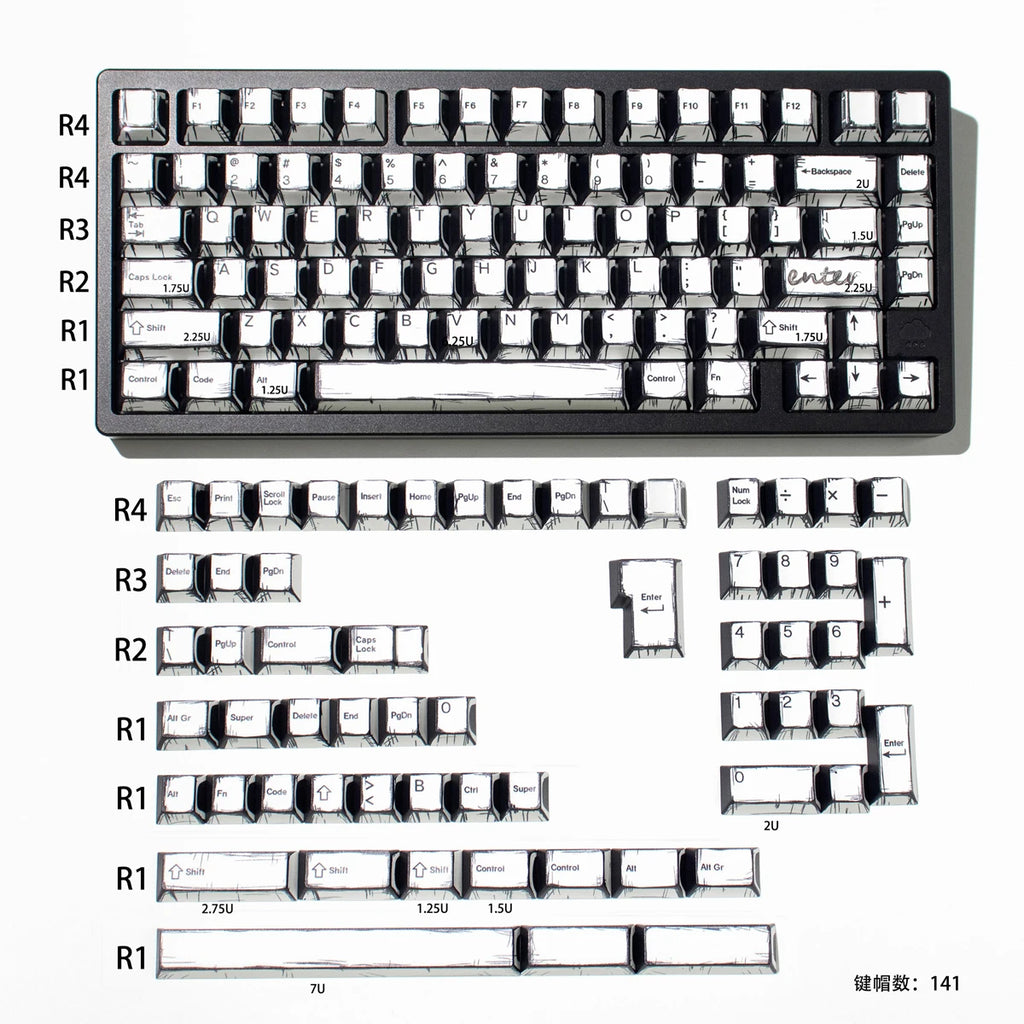 Comic Mixed Lights PBT Keycaps Cherry Profile Five-sided Dye Sub Keycap For ISO Layout Mechanical Keyboard Alice Split Spacebar