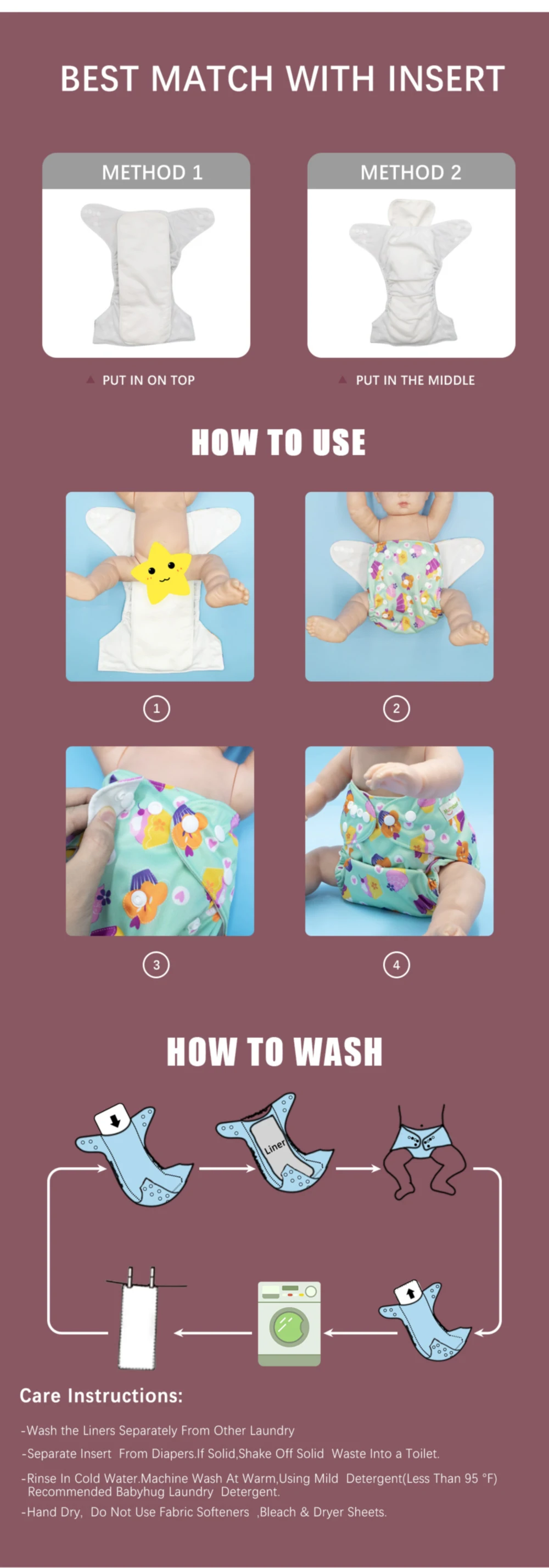 Outer 2 Layers: Bamboo Charcoal -- Keep baby dry fast.