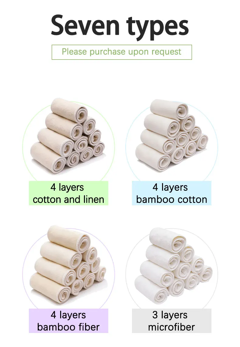 All 4 Layers with Hemp Cotton Material -- Nature Fabric,no harm for baby skin. Comfortable for baby