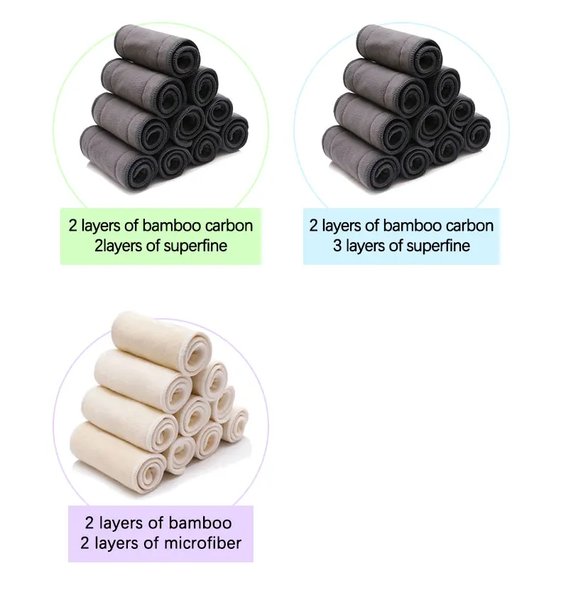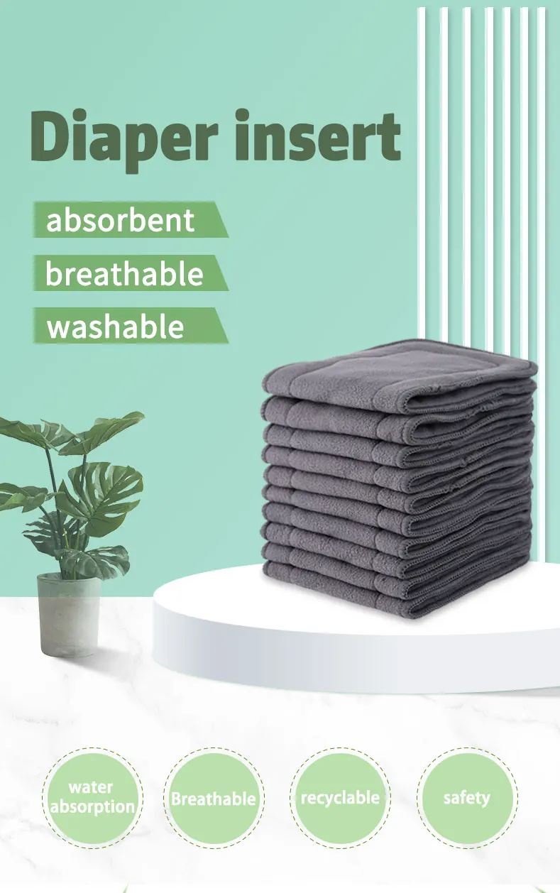 F:10Pcs 4 Layers Charcoal Bamboo Inserts