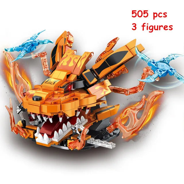 Ninja Bijuu Uzumaki Naruto Kurama Kyuubi Nine Tailed Fox Building Blocks Kit Classic Cartoon Anime Movie Model Kid Toys Gift
