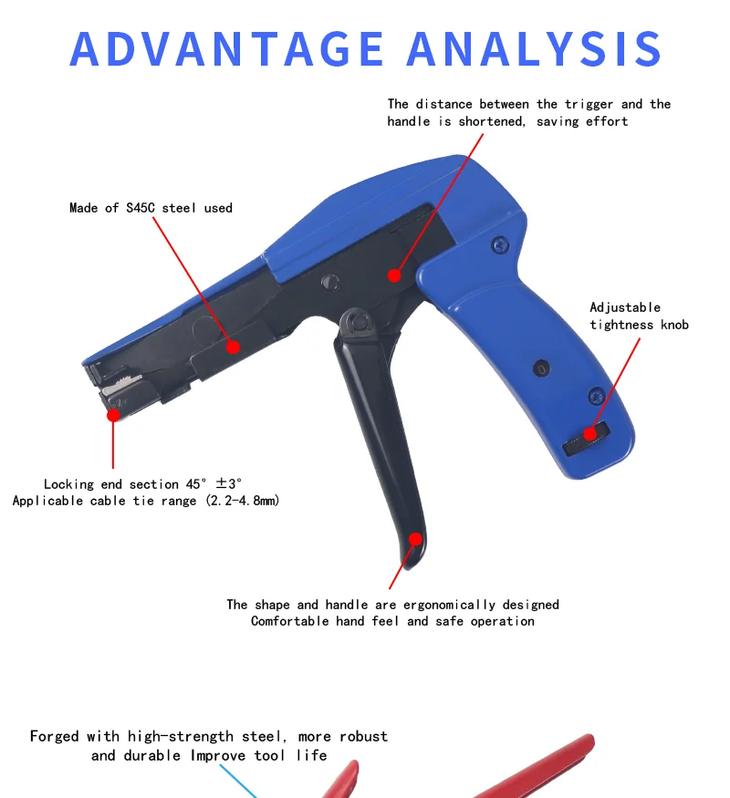 HS-600A/HS-519 Fastening Cutting Tool Special For Cable Zip Tie Gun For Nylon Cable Tie Width 2.4-4.8mm 2.4-9mm