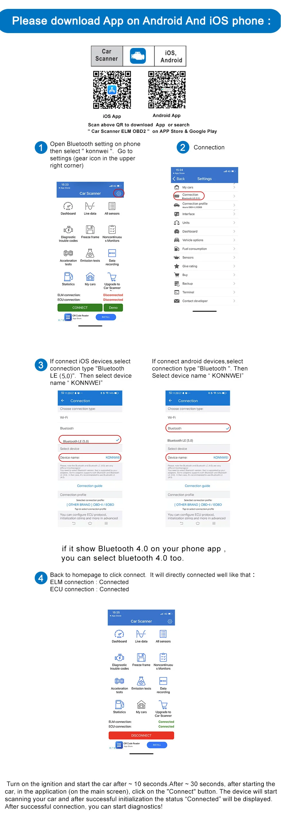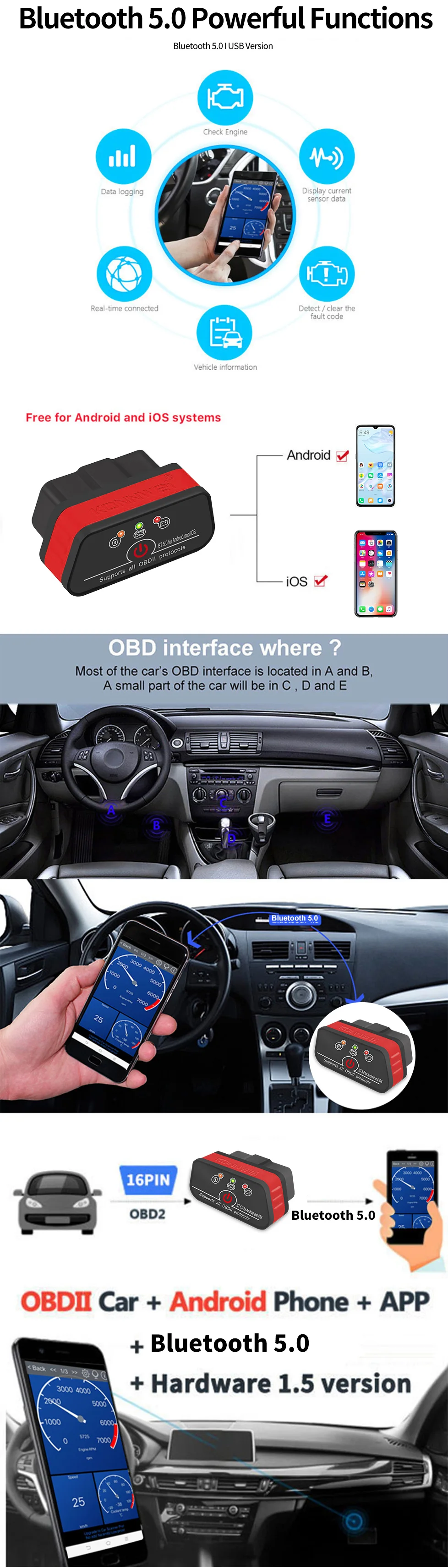 Feaure 2: KONNWEI OBD2 Scanner ELM327 V1.5