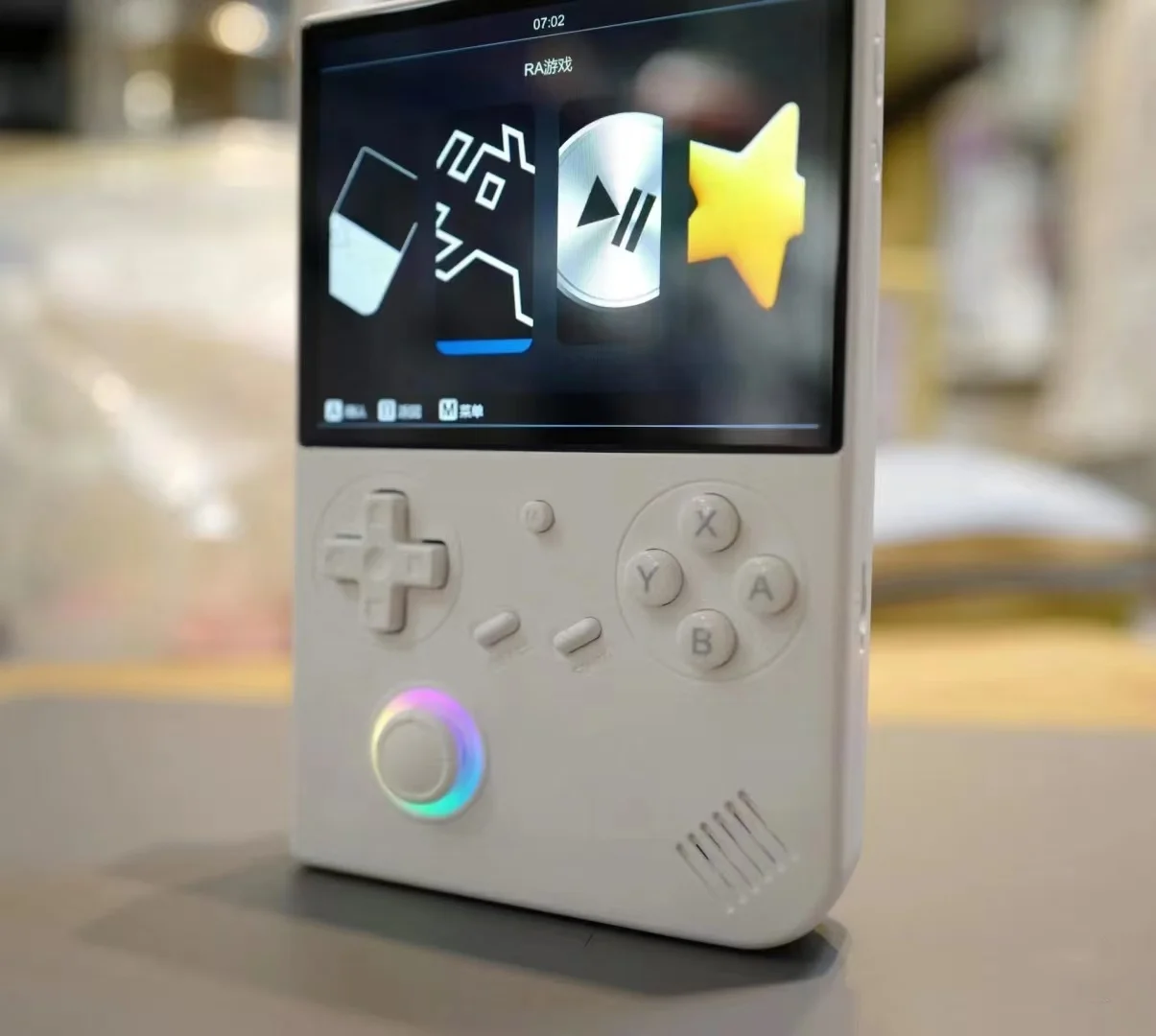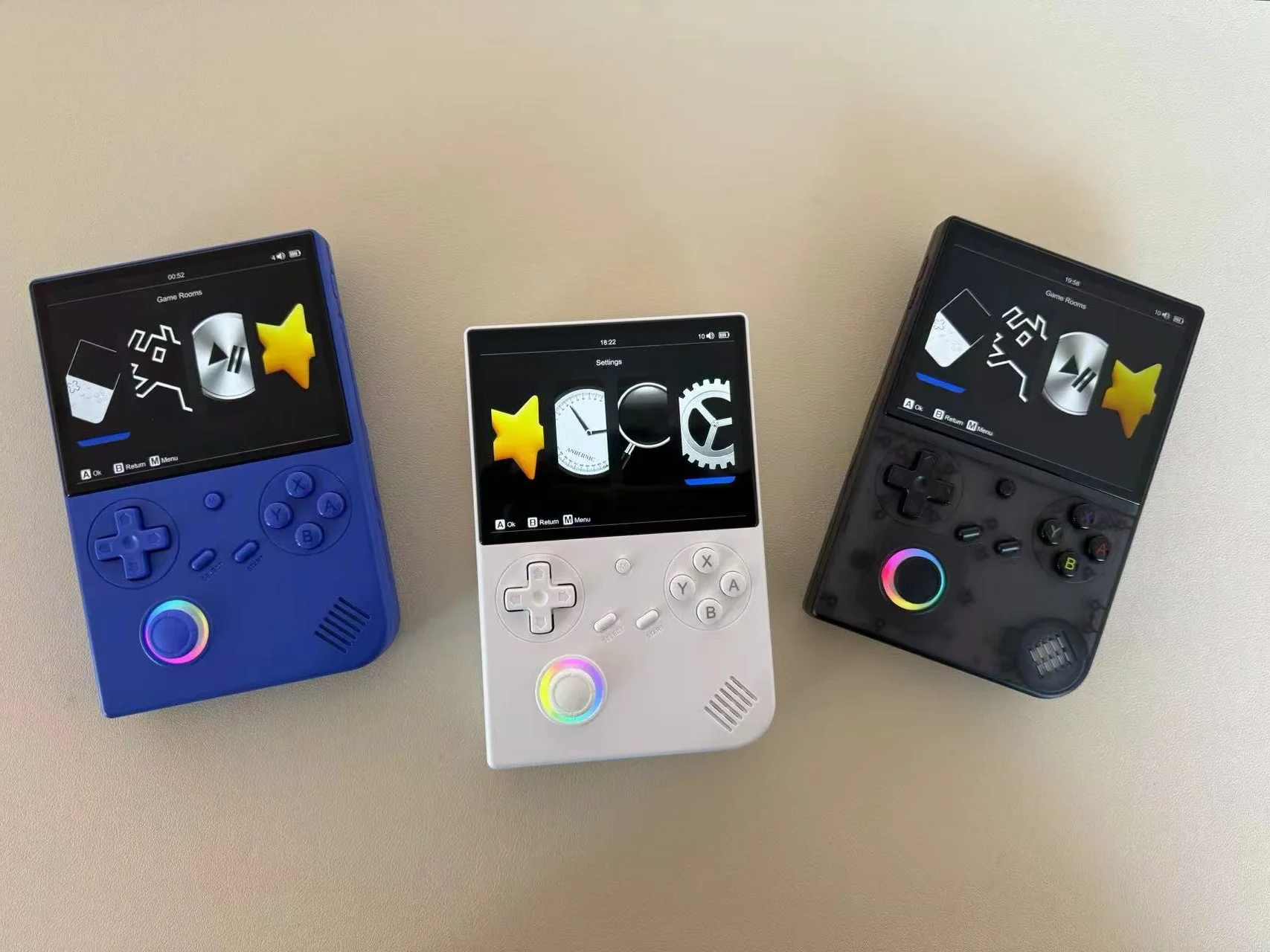 ANBERNIC RG 40XXV new game console, upgraded to Linux 64-bit System, available in three colors: White, Transparent Black, and Indigo Blue.these colors are very novel and convenient, the best choice for traveling!