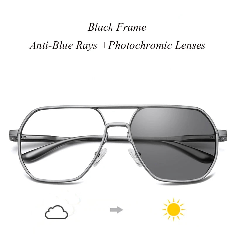 HDCRAFTER Metal Oversized Computer Eye Glasses Anti-Blue Rays Photochromic Lenses Eyeglasses Frame For Women Men Oculos de grau