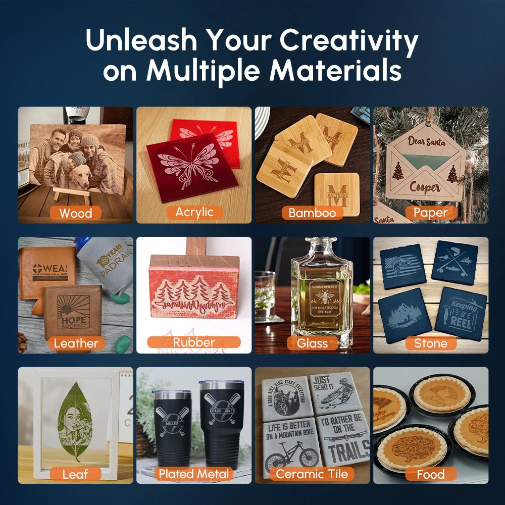 Offline Control: Support mobile APP control, wifi connection, USB connection, offline USE,The machine is compatible with various mature engraving software, such as LaserGRBL, LightBurn, Benbox, GrblController, LiteFire, supports PWM mode engraving, supports Windows Mac system, and engraving file format Support JPG, PNG, DXF, SVG, G-code, NC, BMP, etc.