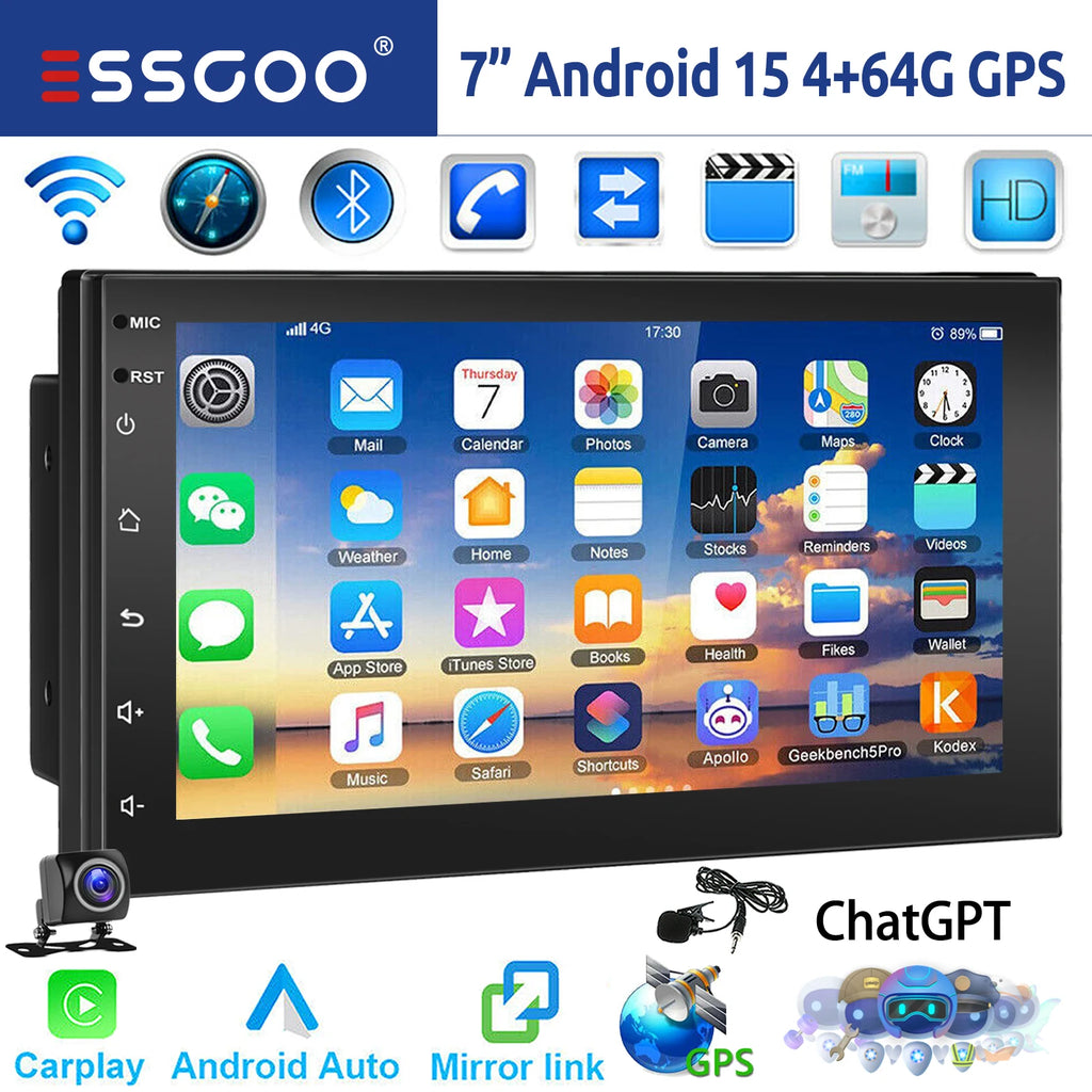 ESSGOO 7"/9"/10“ 2 DIN Android 14 4+64G Car Stereo Carplay Android Auto GPS Navi Bluetooth FM RDS Radio WIFI Touchscreen ChatGPT