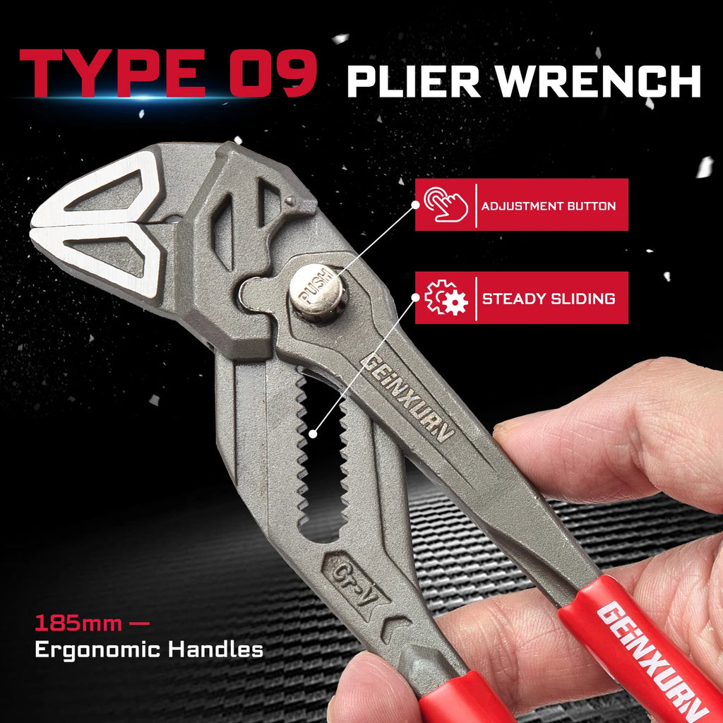 Geinxurn Groove Joint Plier7.3Inches CR-V Groove Joint Plier WrenchQuickly adapt to any task with 15 positions, built from tough CR-V steel for lasting durability.Engineered with hardened, thickened jaws to provide a secure, non-slip grip on pipes up to 38mm.Curved tooth design bites firmly into surfaces