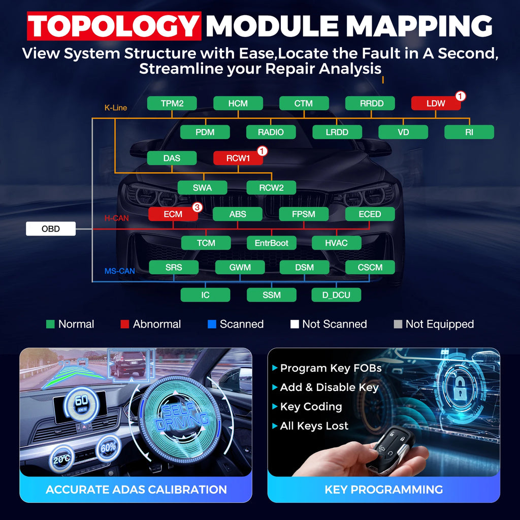 * Introducing the revolutionary function of topology mapping in automotive diagnostic products! Say goodbye to guesswork and hello to precision with our advanced technology that allows you to easily identify and locate faults in your vehicle's electrical system. With topology mapping, you can quickly and accurately diagnose issues, saving you time and money on costly repairs.