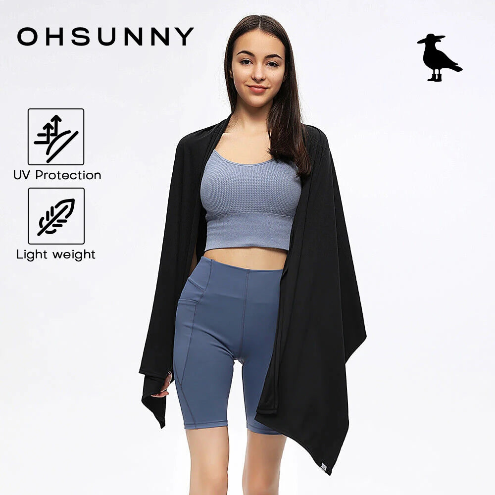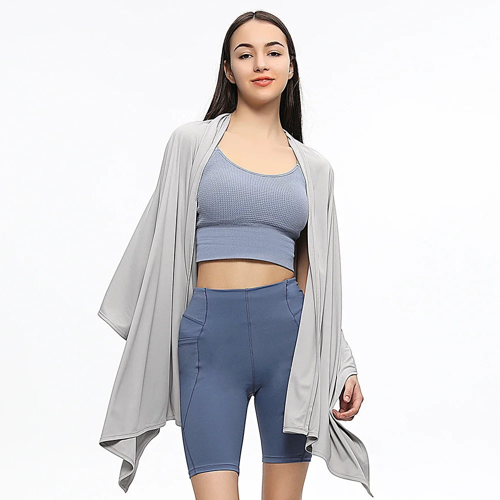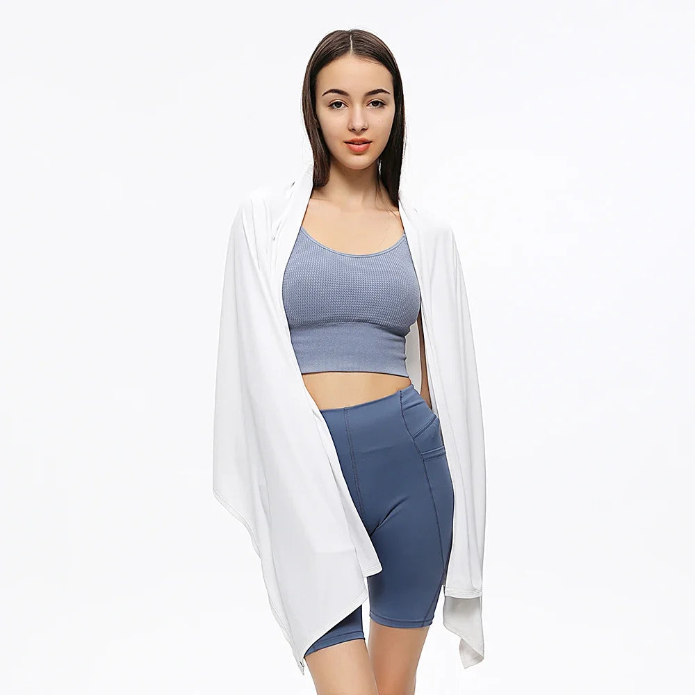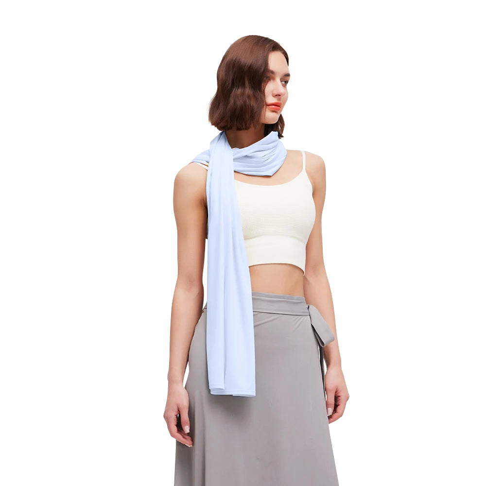 A versatile blanket that can be used as a shawl, scarf, or sunscreen skirt