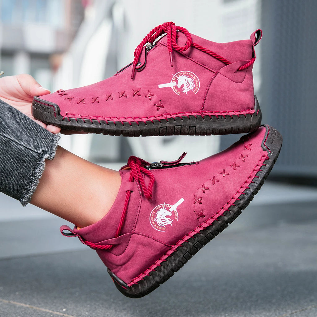 Western Chic Handmade Ankle Boots - Premium Hand-Stitched, Soft Leather, Casual Outdoor Shoes for Women - Comfortable, Durable,