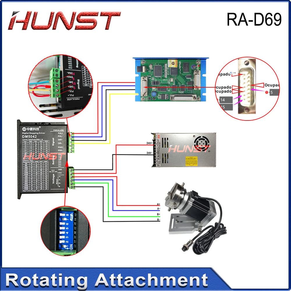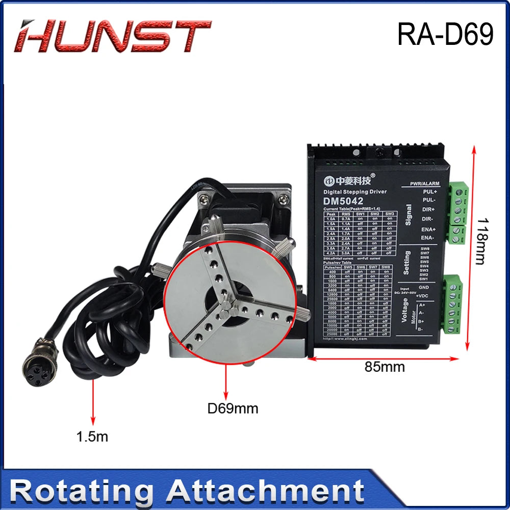 Hunst D69 CNC Router Laser Marking Machine Rotary Axis Chuck for Ring Bracelet Jewelry Engraving Auto Lock Rotary Attachment