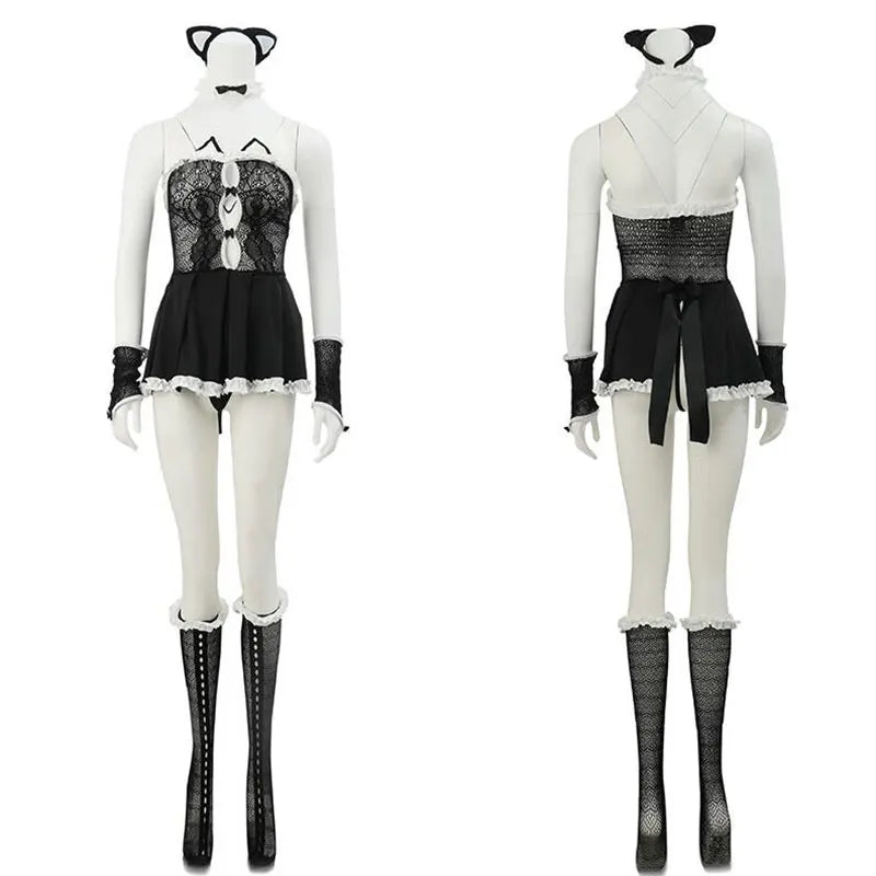 Kawaii Girls Black Night Dress Ruffle Cake Lolita Princess Dress Hollow Strapless Evening Dress Nightgown Cosplay Sexy Pajama