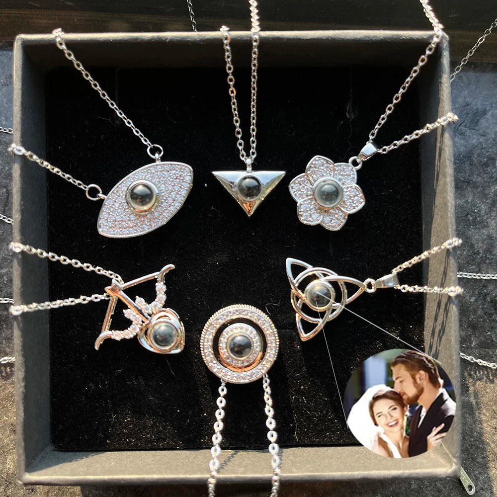 Valentine's Day Gift Custom Photo Projection Necklace DIY Picture Inside Titanium Steel Chain Couple Necklace Women Men Jewelry