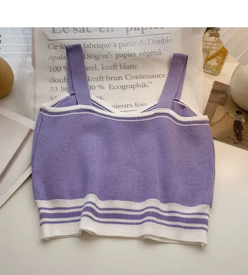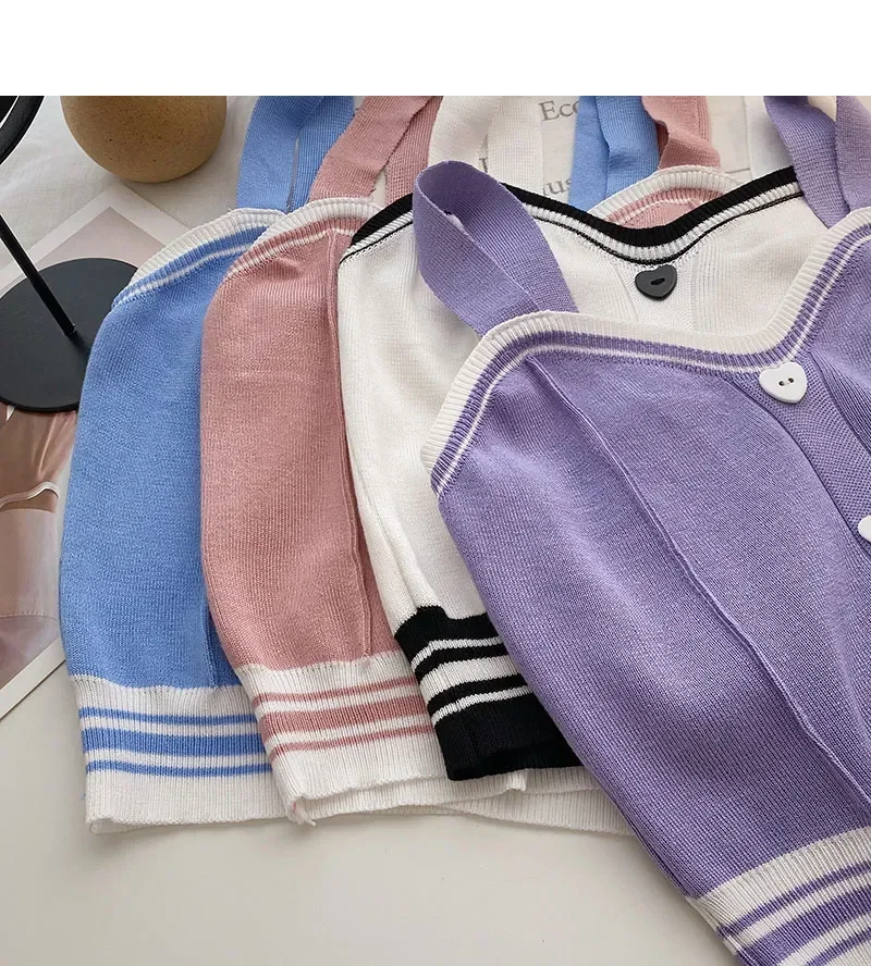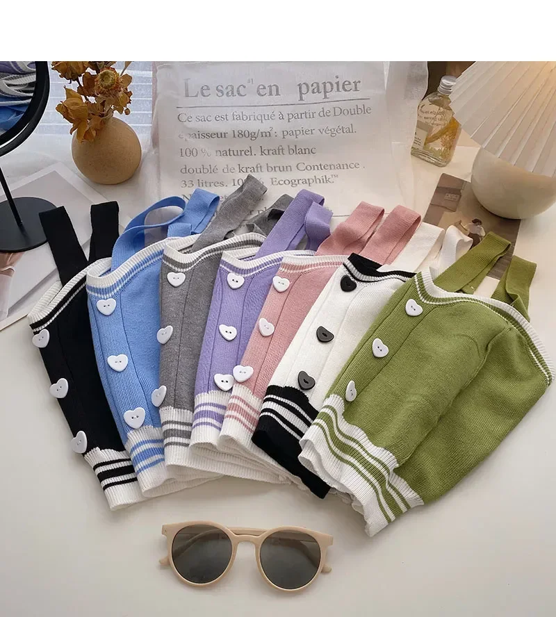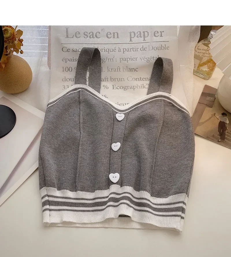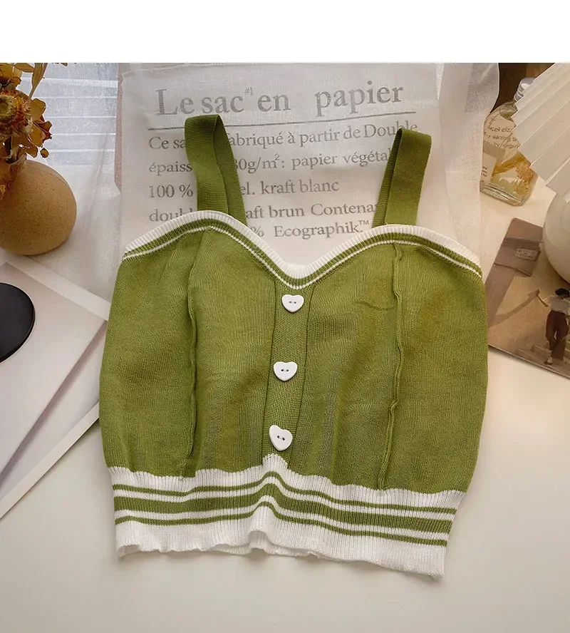 Women Y2K Cute Tops With Buttons Knitted Crop Tops Ladies Camis For Summer Tops Knit Patchwork Top Women Summer