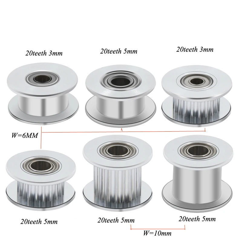 10pcs GT2 Idler Pulley 20 Teeth 16 T Bore 3mm 5mm with bearings 3D Printer Parts for 2GT Timing Belt Width 6mm 10mm H shape