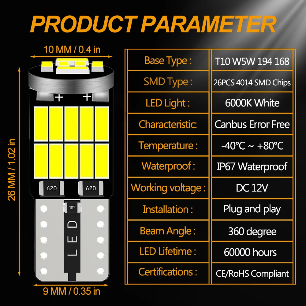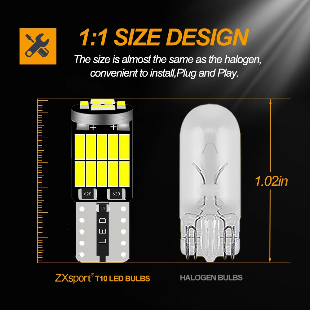Easy to replace Standard 194 168 501 W5W 147 152 158 159 161 184 192 193 259 280 285 447 464 555 558 585 655 656 657 1250 1251 1252 2450 2652 2921 2825 Wedge base Model which is a small bulb