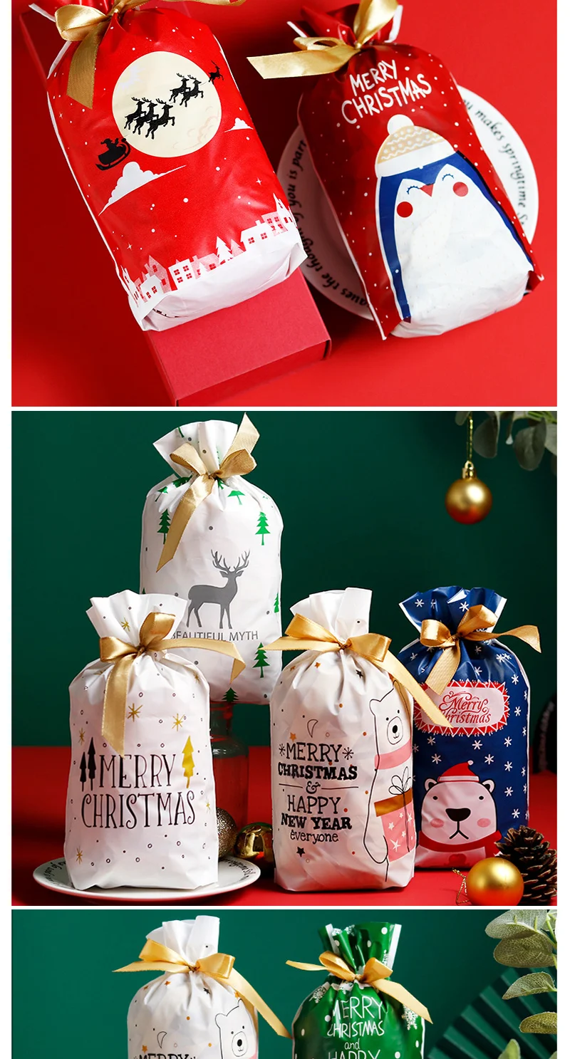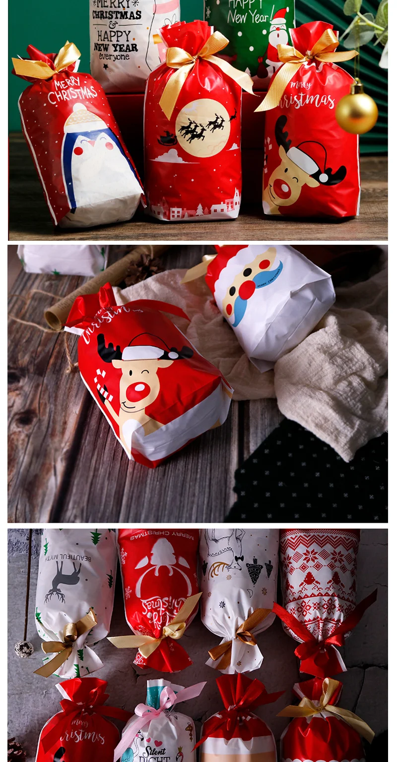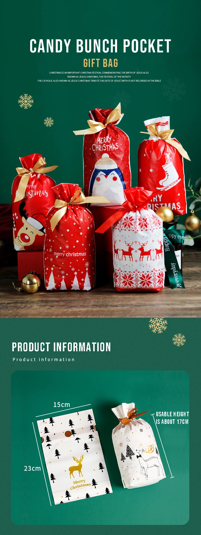 20/50pcs Christmas Candy Bags Christmas Decorations Santa Gift Bag Navidad Xmas Gift Bags Cristmas Cookies Packing Bag 15x23cm