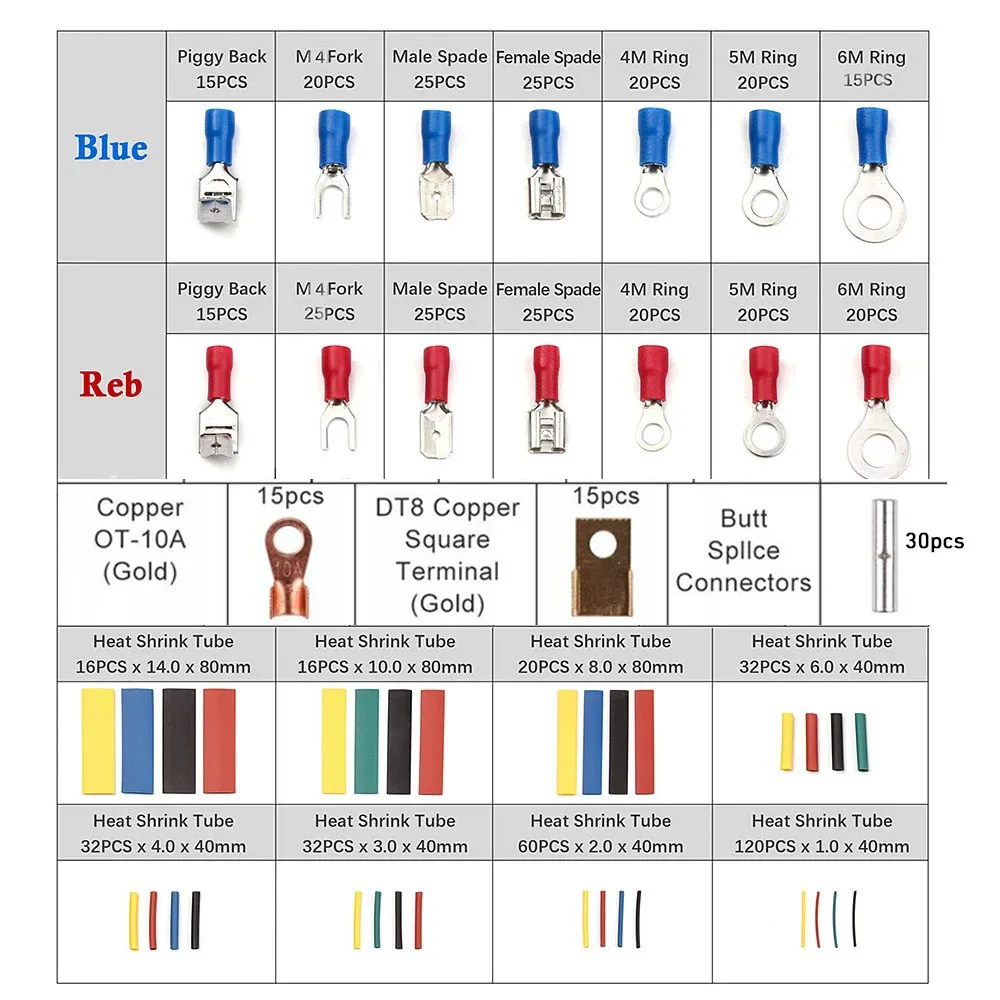 280/678PCS Heat Shrink Tube Sleeving Set Car Electrical Wire Terminals Insulated Crimp Connectors Spade Set Kit with Pliers