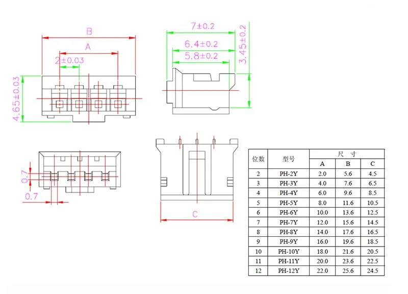 2pcs JST PH2.0 Extension Line 2/3/4/5/6Pin PH 2.0mm Male To Female Connector With Cable Length 10/20/30cm 26AWG