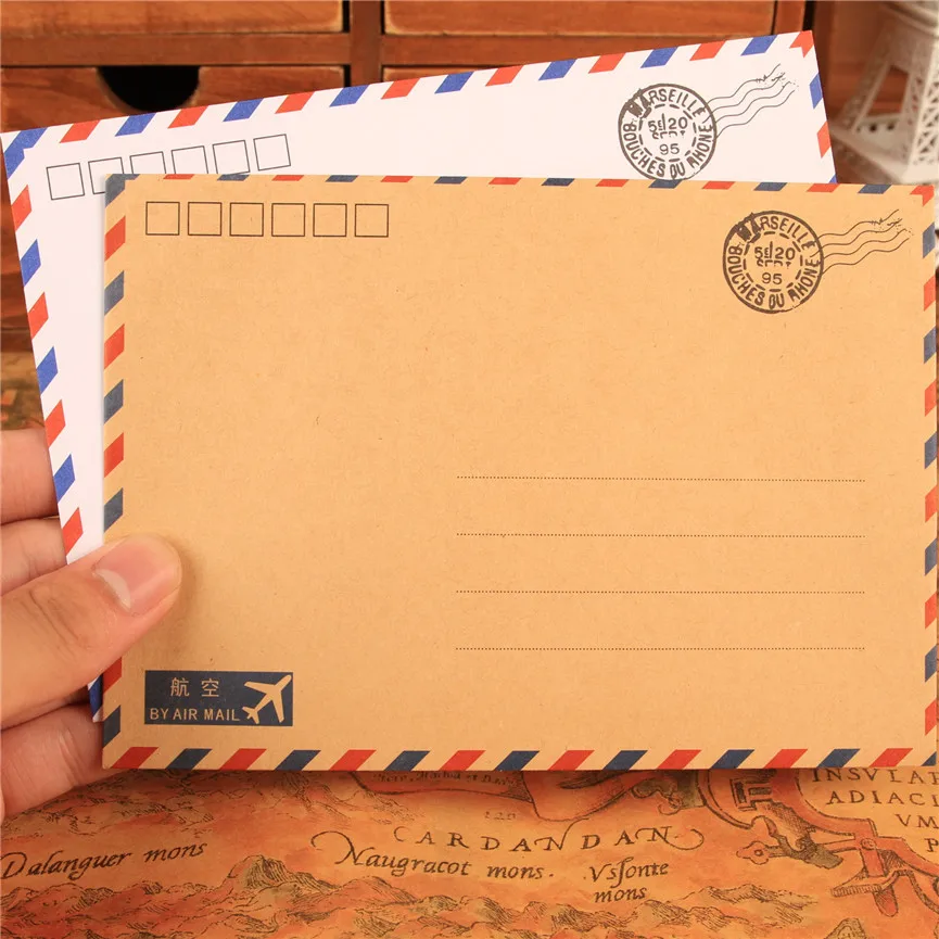 8pcs/pack 17.5x12.5cm Post Paper Envelopes White Kraft Color Air Mail Letter Envelope