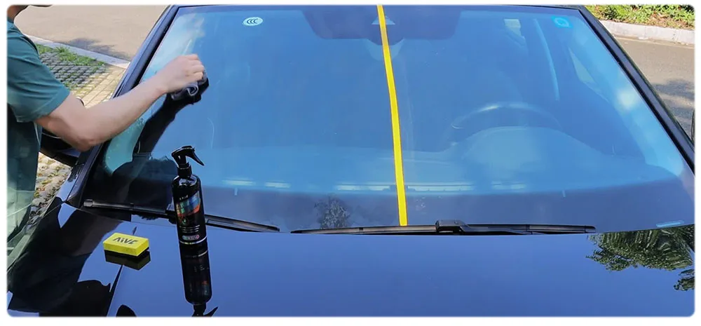 2.Shake bottle well before use.Spray Glass Hydrophobic Coating onto a clean cloth or paper towel and buff into the windshield in a circular motion. Reapply the product to your cloth as needed until the entire window has been covered.