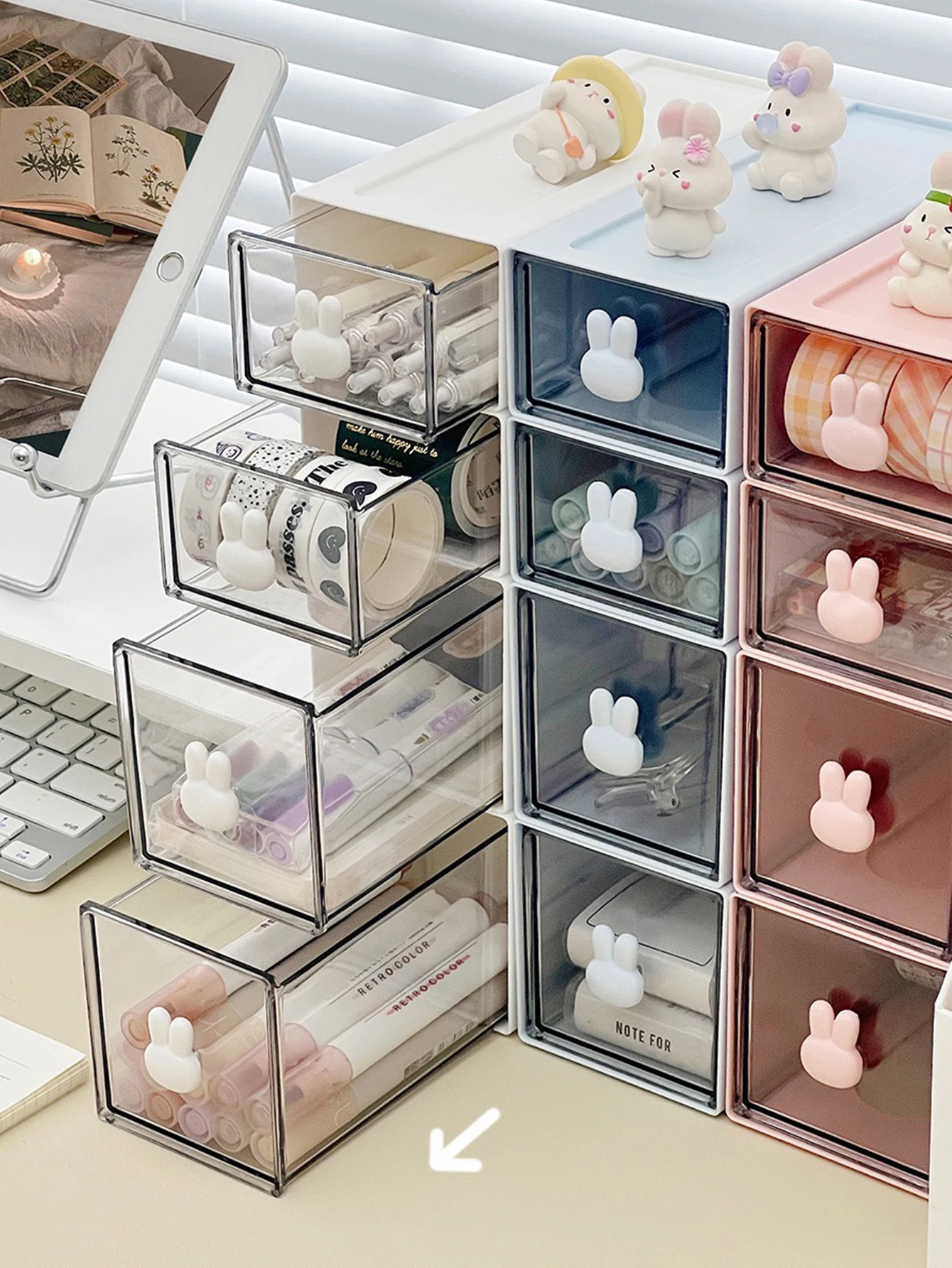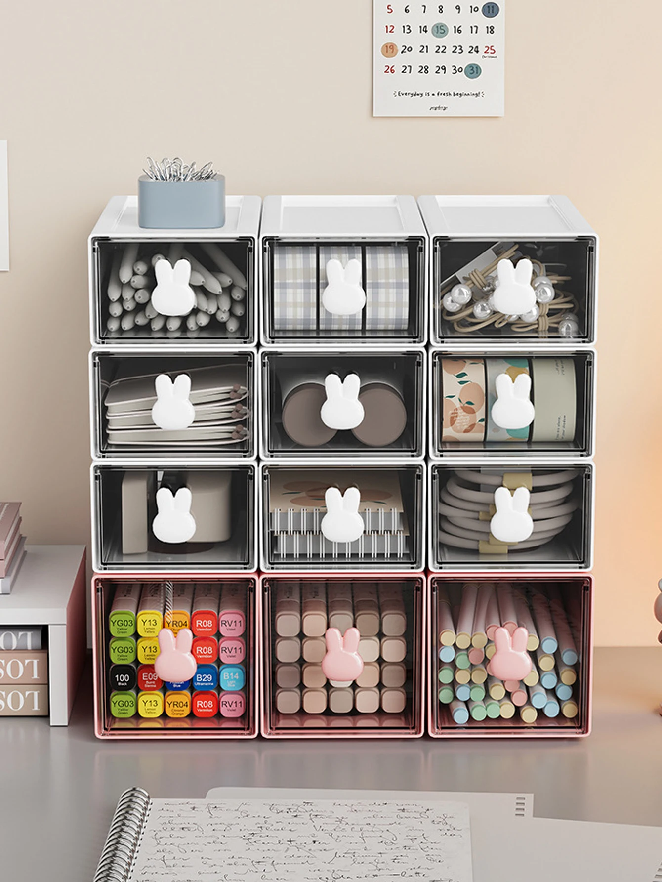 Cute Rabbit Storage Box Office Desktop Transparent Drawer Style Student Desk Stationery and Sundry Storage Shelf