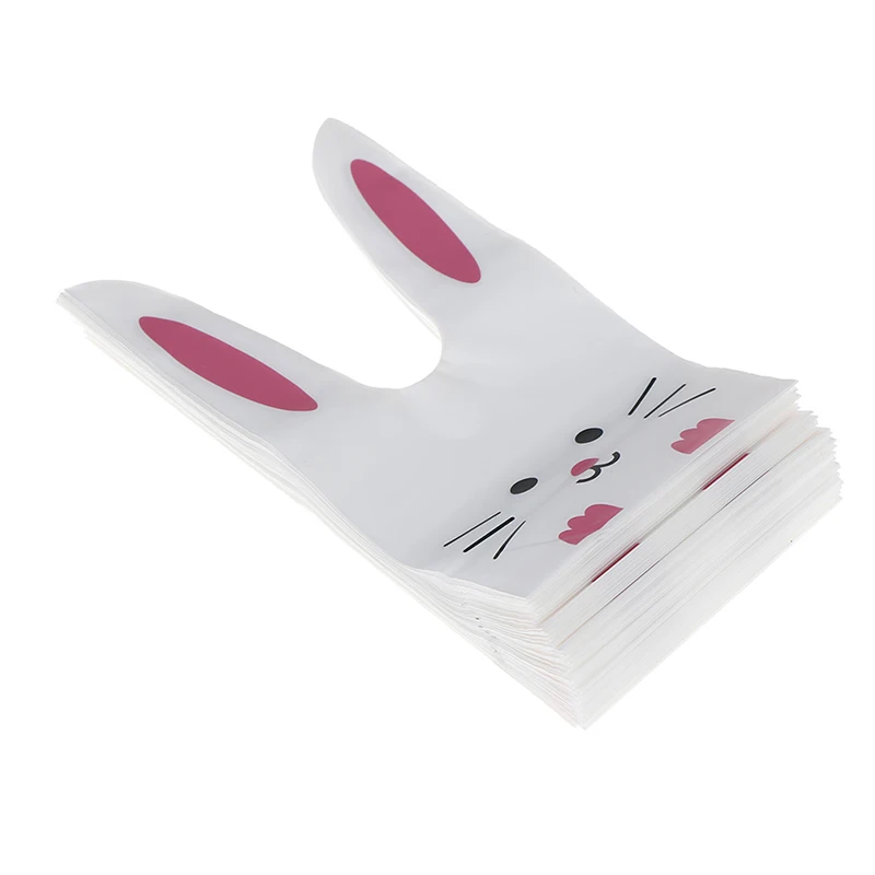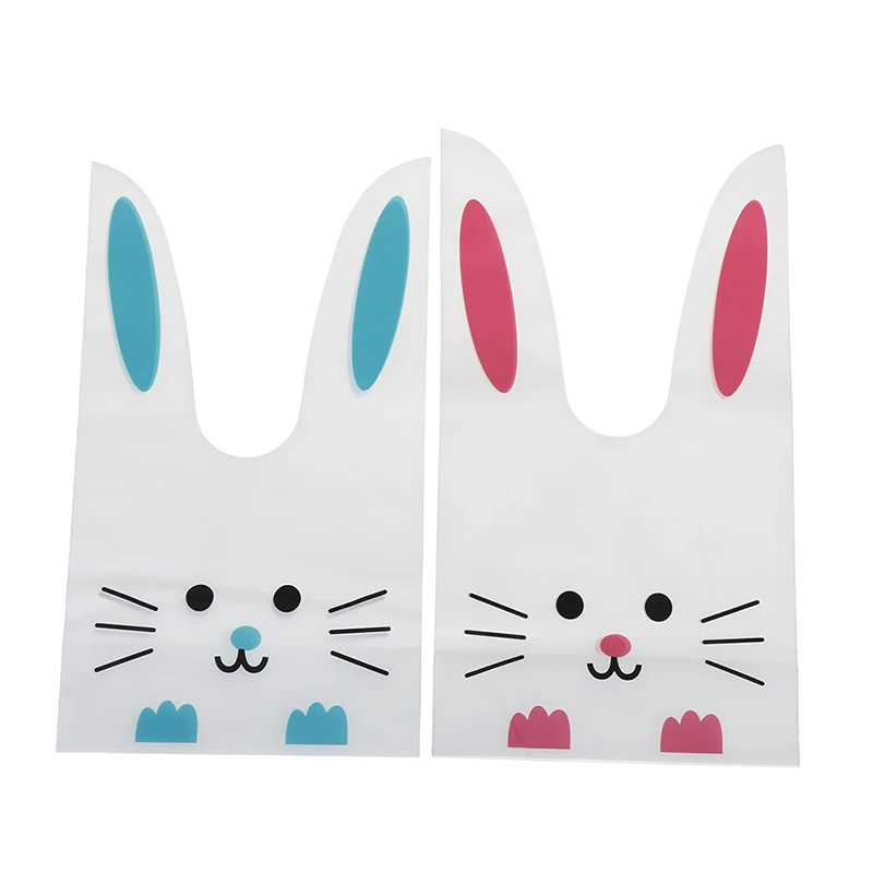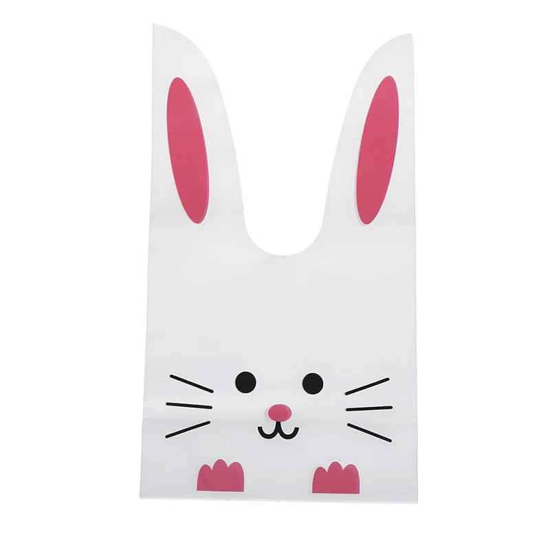 Hot New Cheap Wholesale 50pcs Cute Long Bunny Rabbit Ear Gift Bag Easter Candy Gift Plastic Party Favors 10*17cm