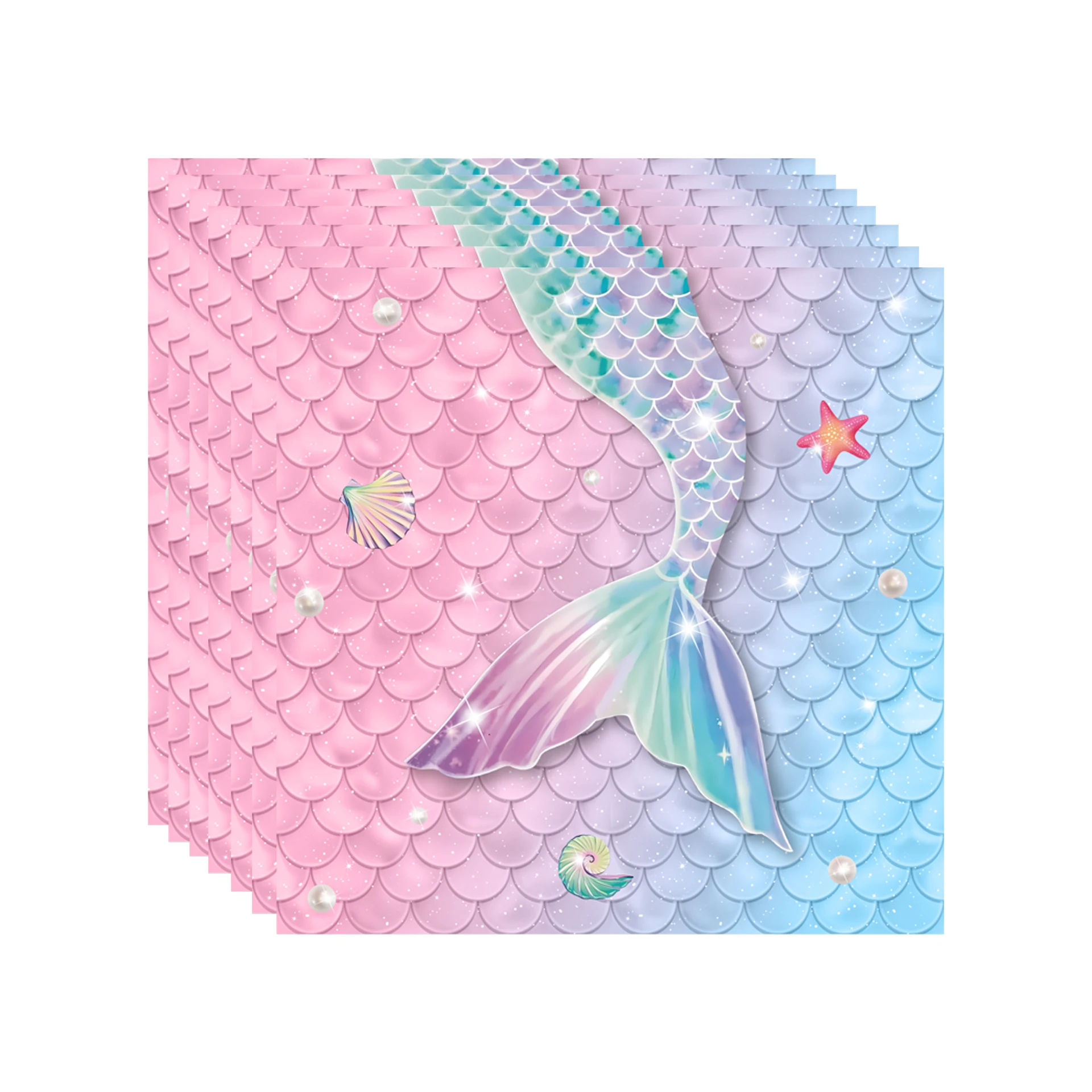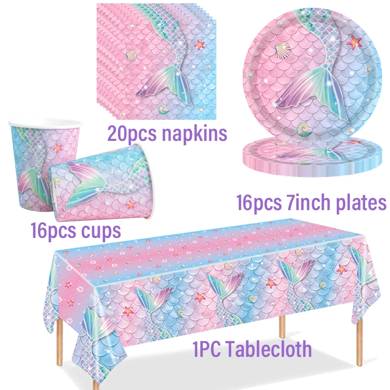 Mermaid Party Disposable Tableware Little Mermaid Tail Paper Plates Napkin Tablecloth Girls Birthday Party Under Sea Theme Decor