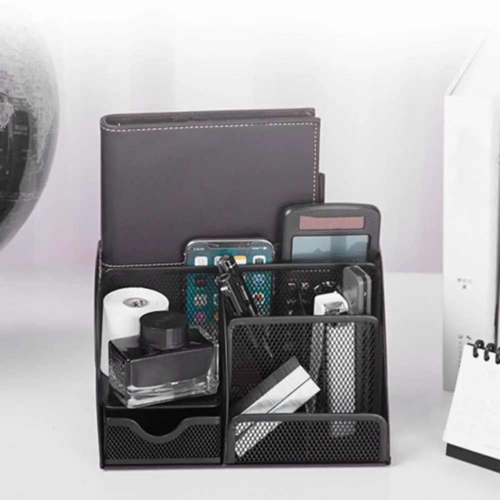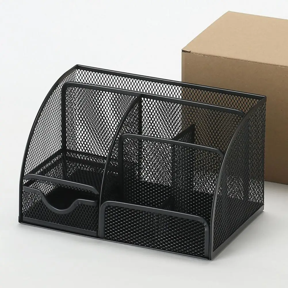 Office Desktop Storage Box Desktop Pen Holder Metal Pen Holder with Multiple Compartments Metal Mesh Square Divided Container