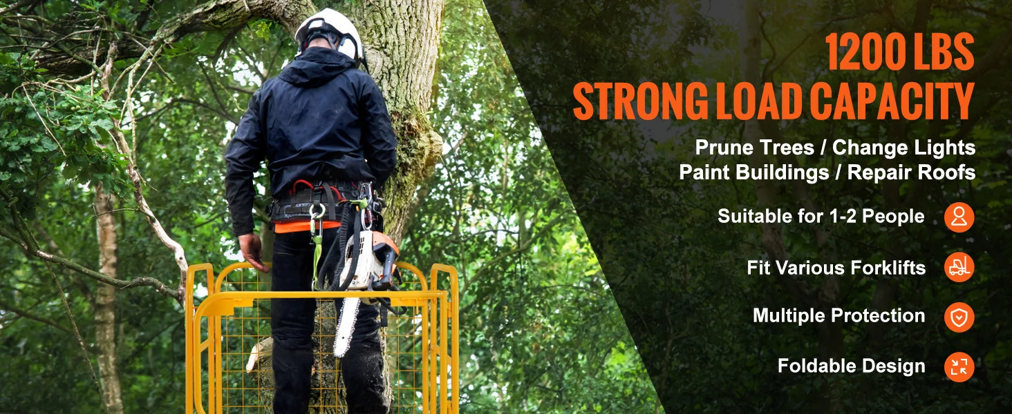 Ready for Any Load: Experience stability and security with our powerful forklift work platform! With a weight capacity of up to 1200 lbs, you and a partner can safely tackle aerial tasks. It easily attaches to any standard forklift or pallet loader for maximum convenience. Elevate your work game with this reliable solution for working at any height!