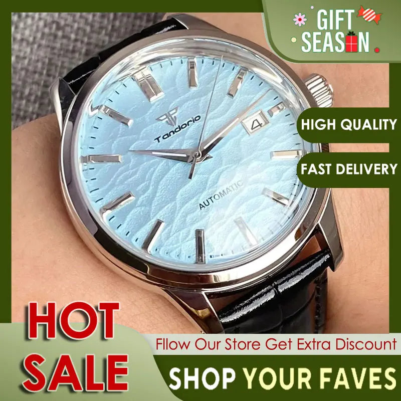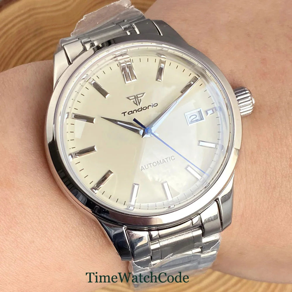 Tandorio Automatic Watch for Men Auto Date NH35A Movement 10ATM Water Resistance 40mm Double Bow Domed Sapphire Crystal