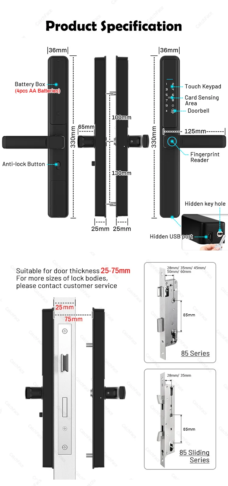 Unlock Mode:APP, Fingerprint, Code, Card,Key