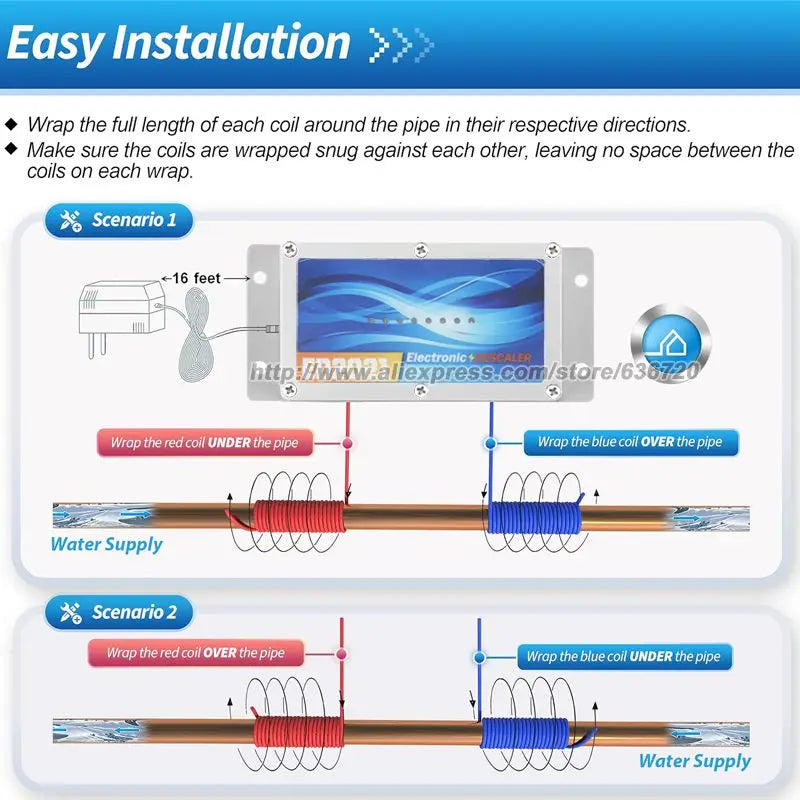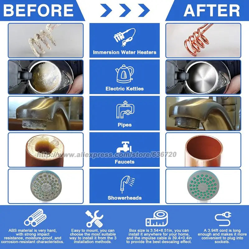 Whole House Water Descaler, Alternative Electronic Salt-Free Hard Water Conditioner, Reduces Limescale Prevent Deposits Build-up