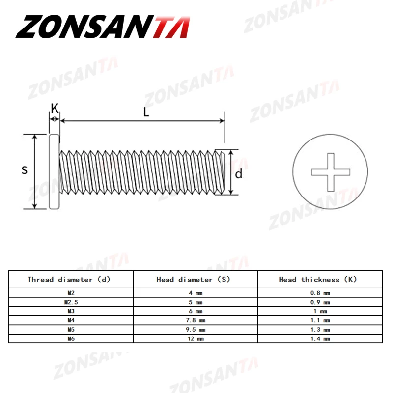 Product Name :ZONSANTA M2 M2.5 M3 M4 M5 M6 304 Stainless Steel Cross Phillips Ultra Thin Super Flat Wafer Head Screw notebook Laptop Bolt