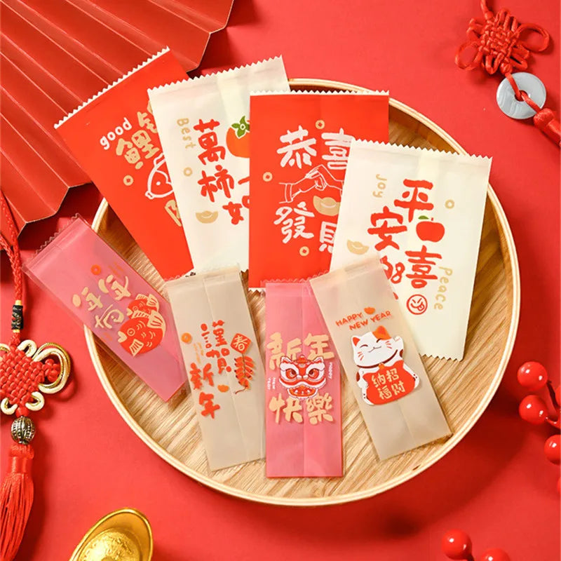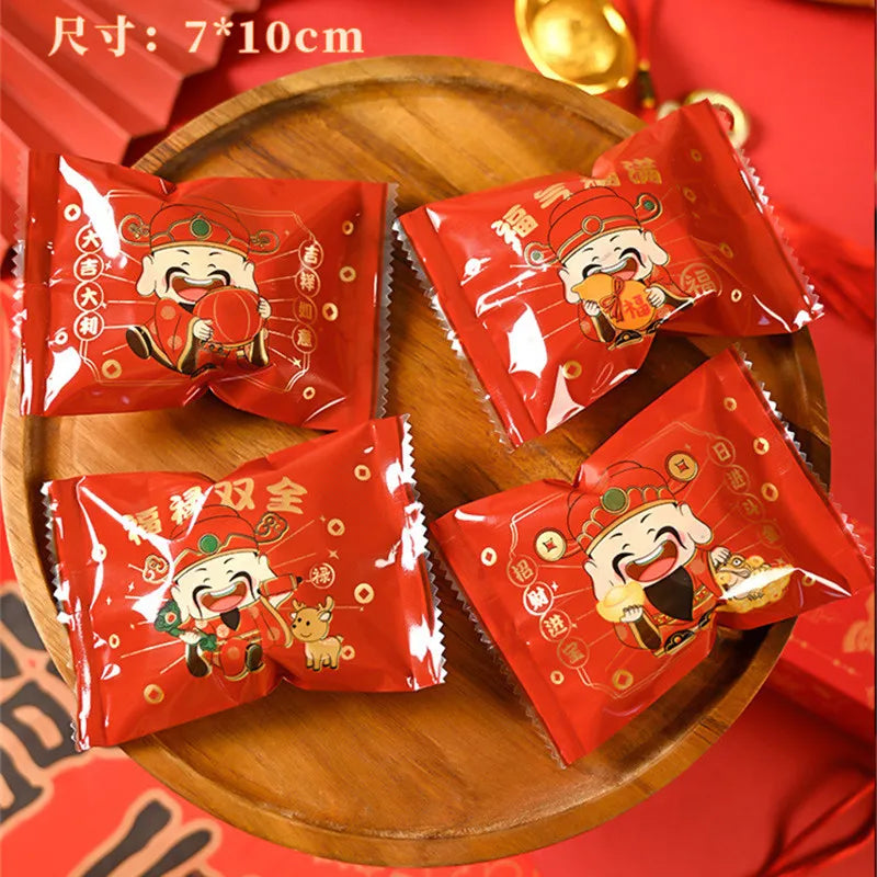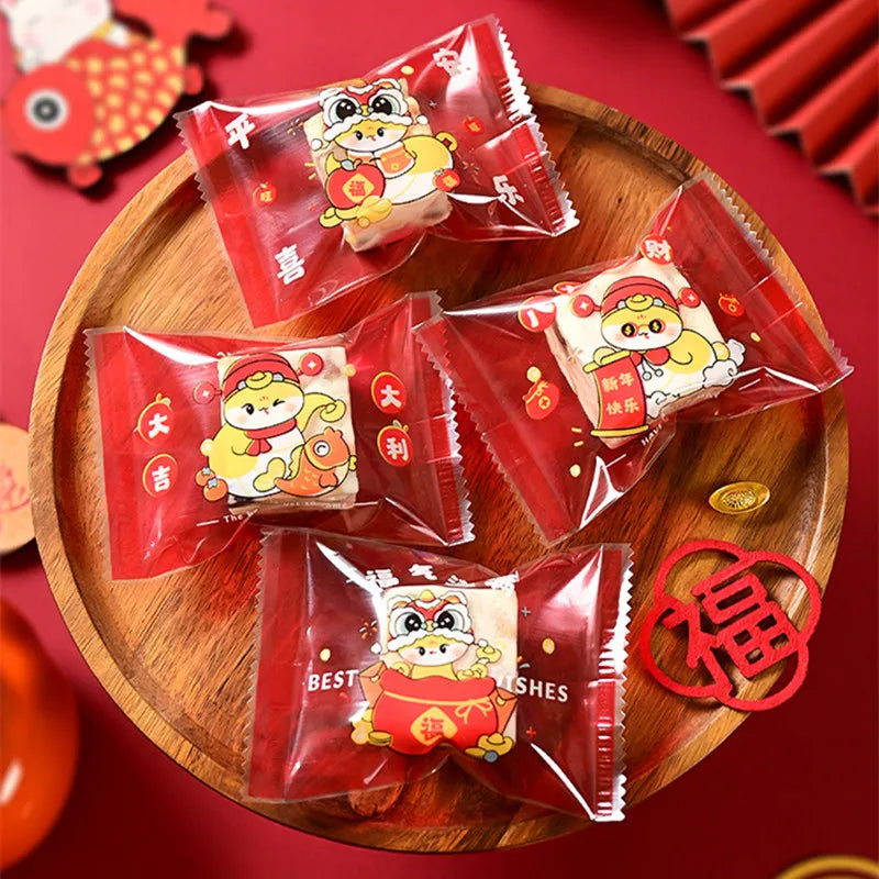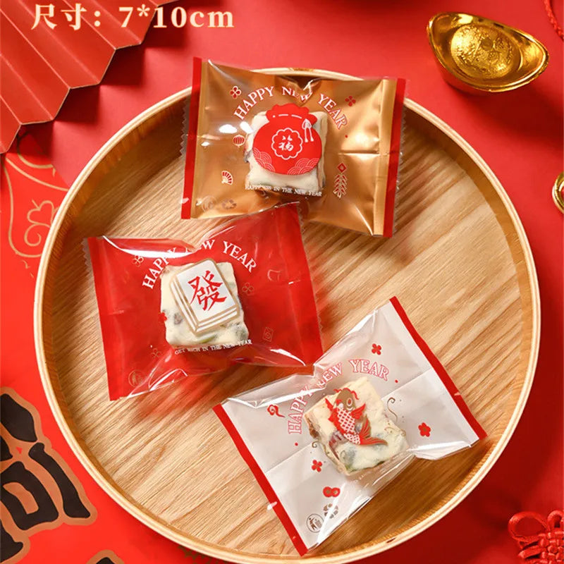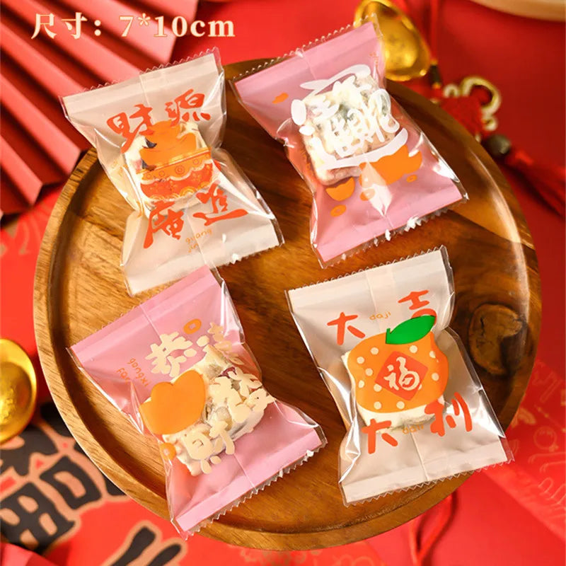 2025 Chinese New Year Snowflake Crispy Packaging 100Pcs 7x10cm Baking Cookie Machine Sealed Candy Bags