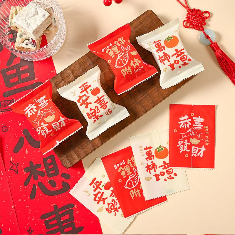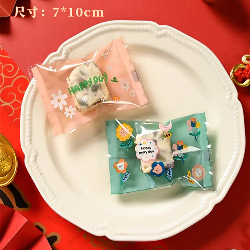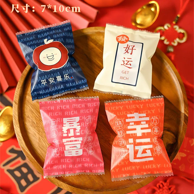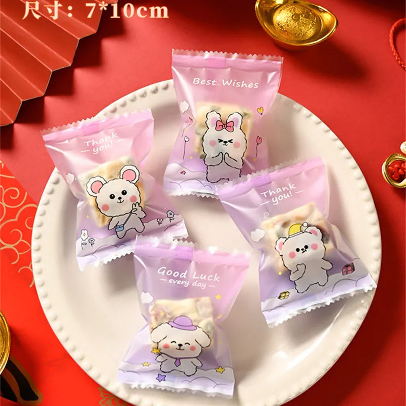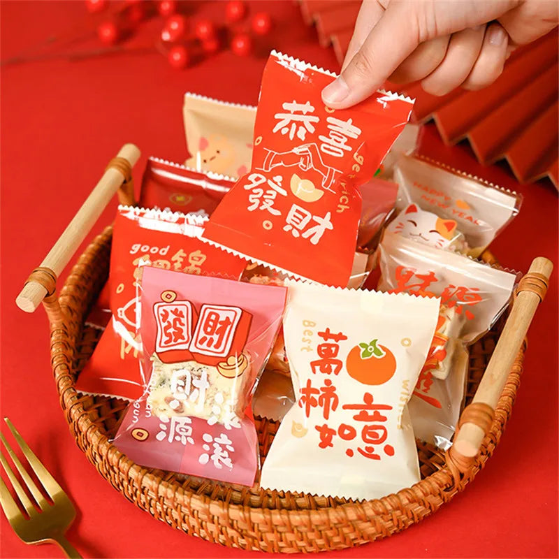 2025 Chinese New Year Snowflake Crispy Packaging 100Pcs 7x10cm Baking Cookie Machine Sealed Candy Bags