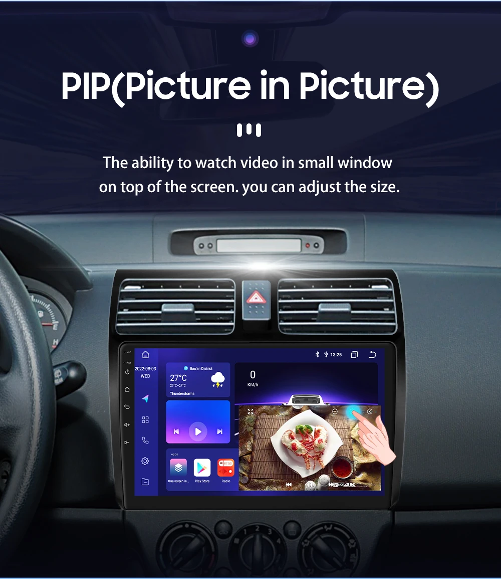 PIP(Picture in Picture): the ability to watch video in small window on top of the screen, you car adjust the size.