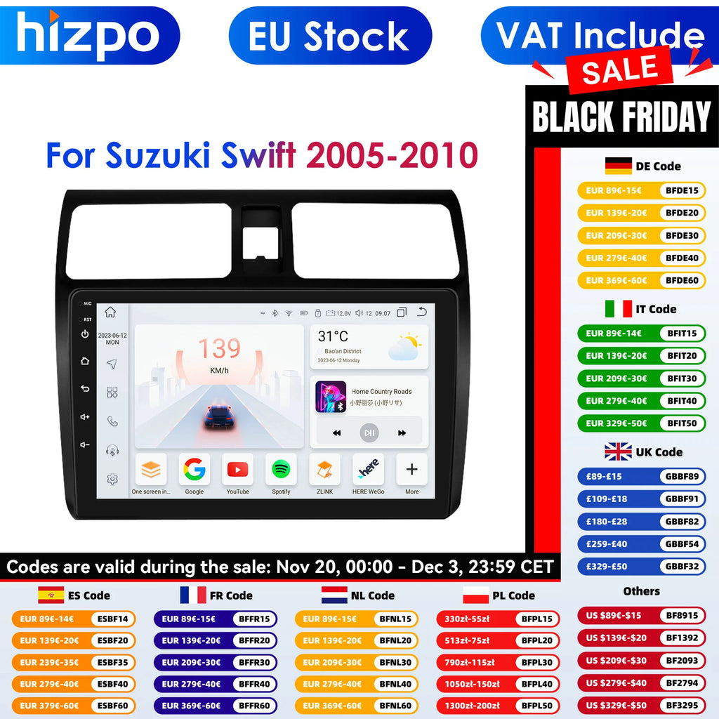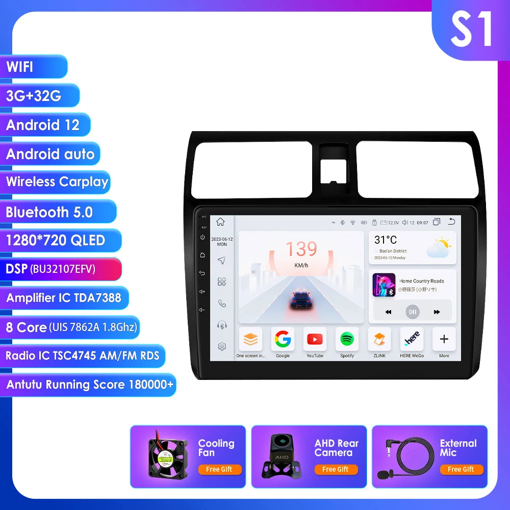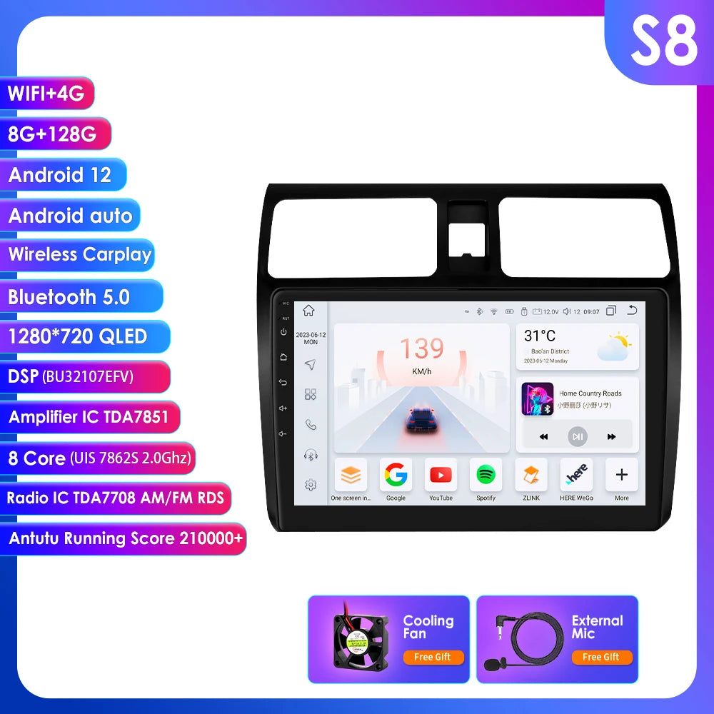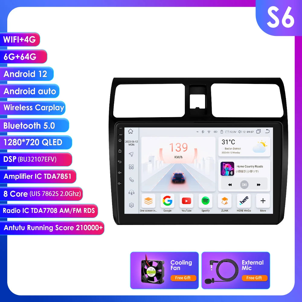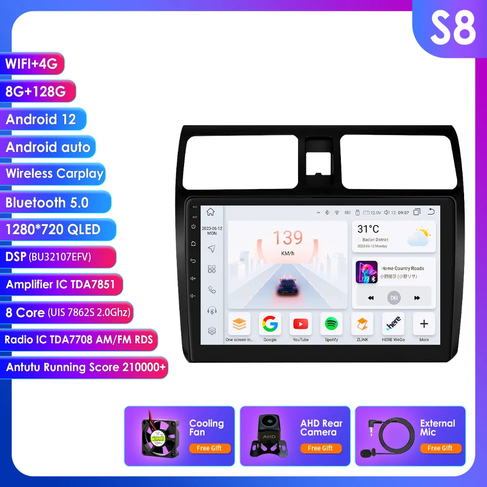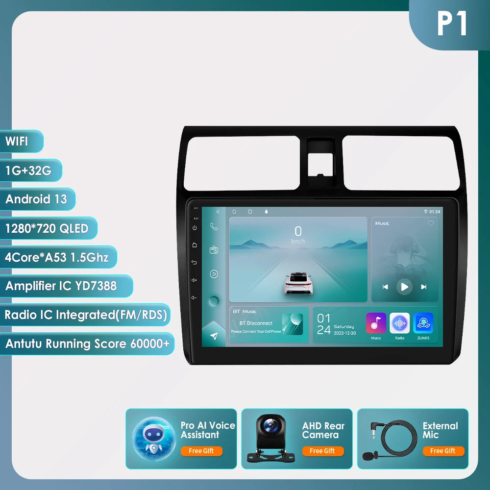 Carplay 4G 2 Din Android 14 Car Multimedia Player for Suzuki Swift 2005-2010 Navigation GPS AutoRadio Stereo DSP BT SWC DVR Cam