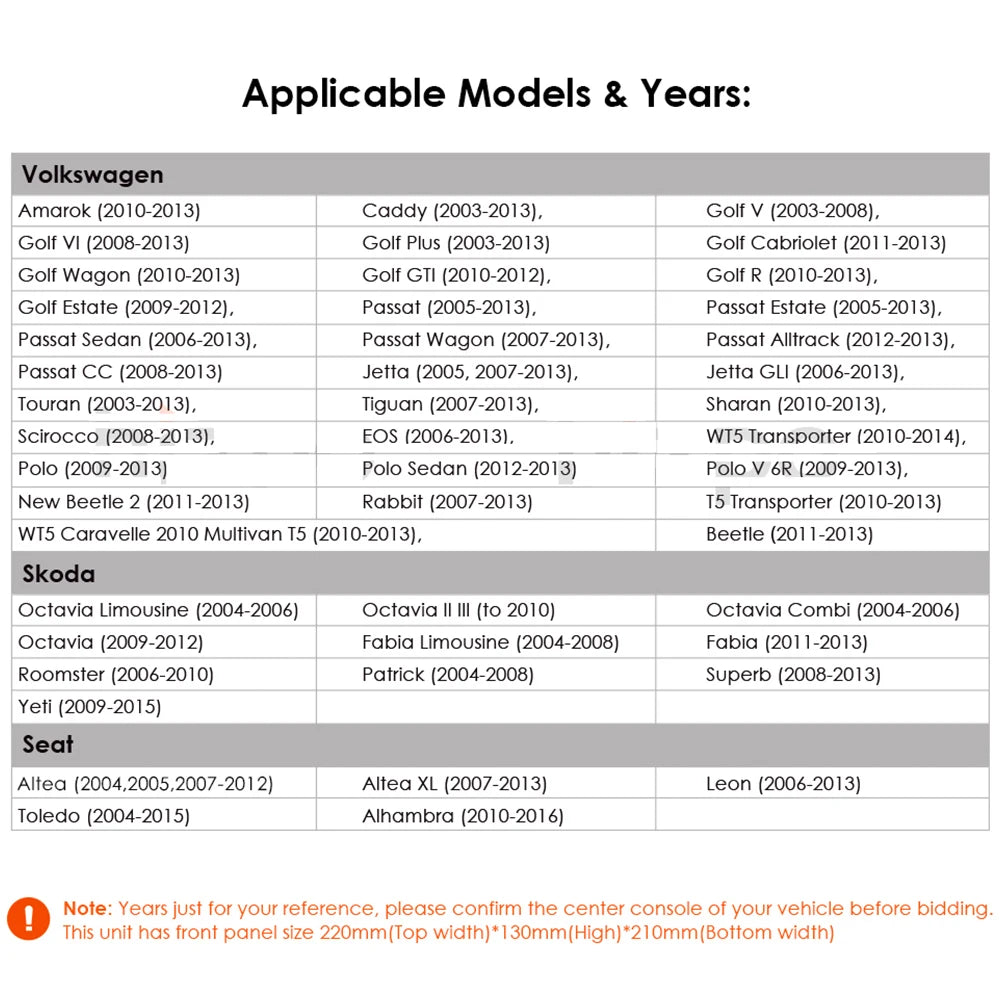 ③ Please check your original car radio size and appearance & its compatible list with the Notice details before make a order bid to avoid mistake; if needs other adapter for installed which needs to order separately except the description accessories picture shows.