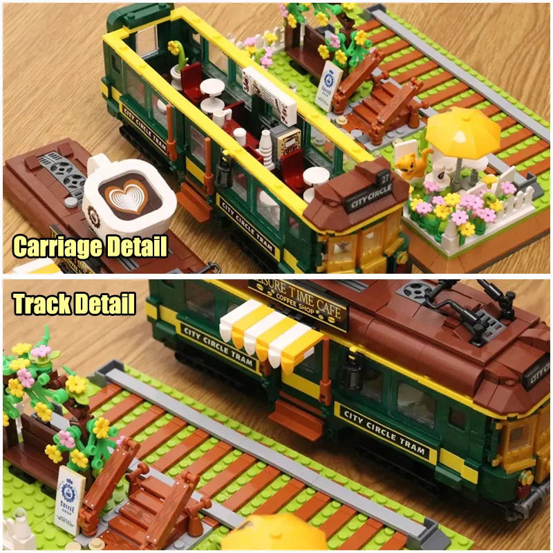 Creative Retro Train Coffee Shop Mini Size Building Blocks City Street View Train Coffee House Bricks Toys Gifts For Children