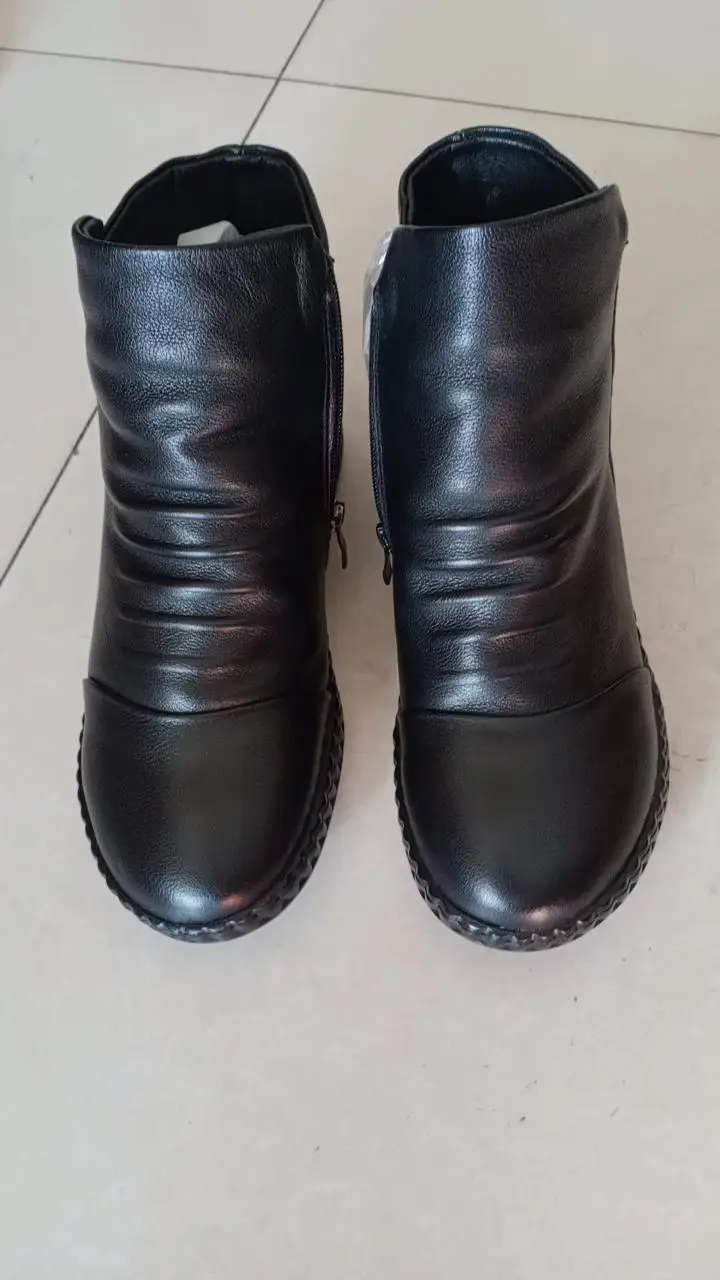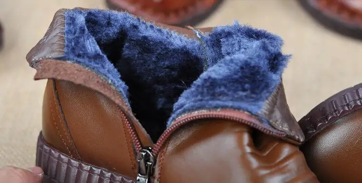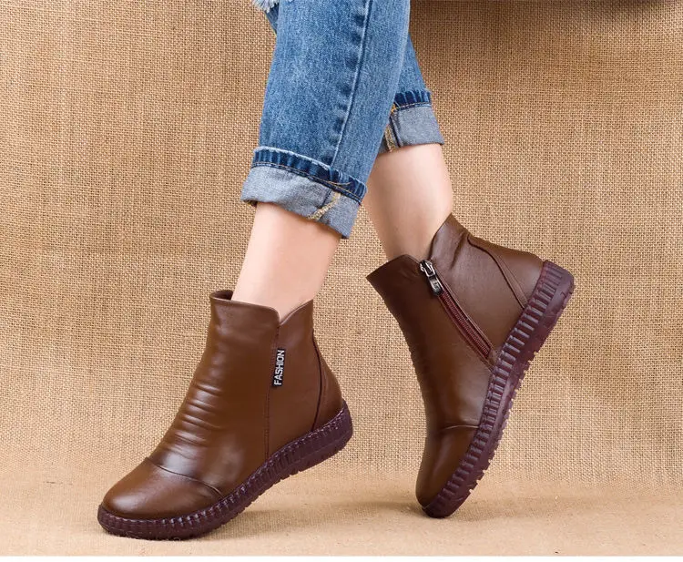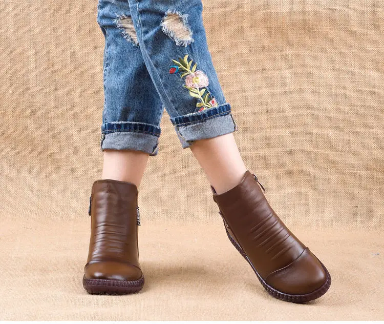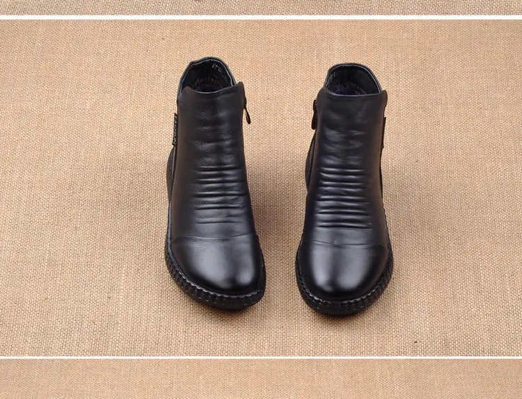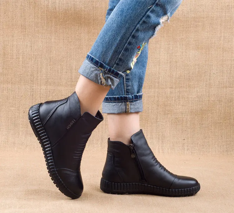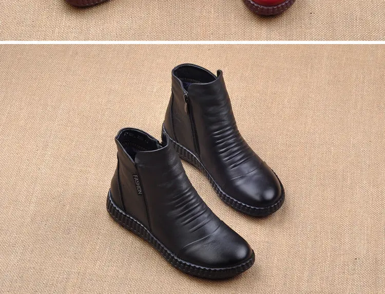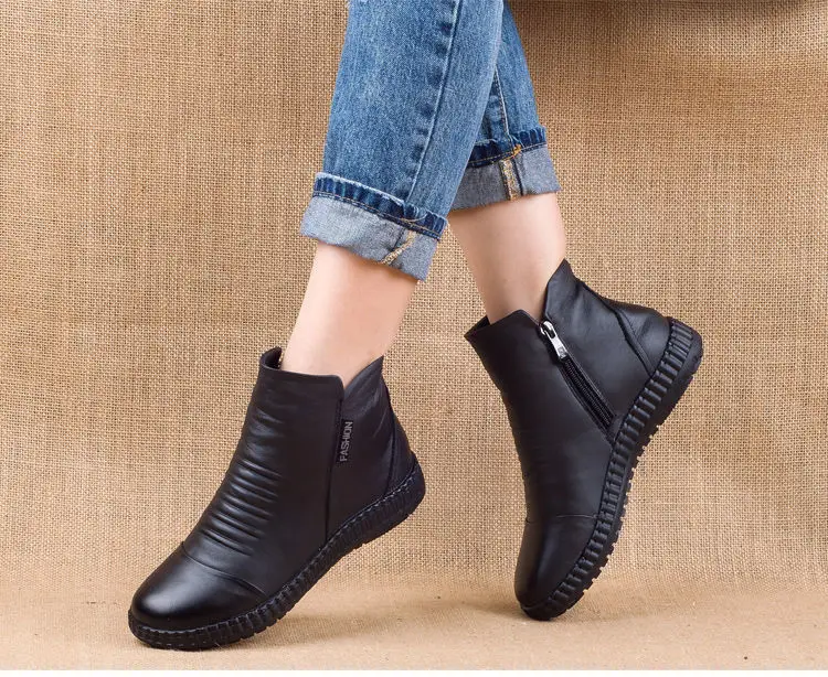 GKTINOO 2023 Winter Genuine Leather Ankle Boots Handmade Lady Soft Flat Shoes Comfortable Casual Moccasins Side Zip Ankle Boots